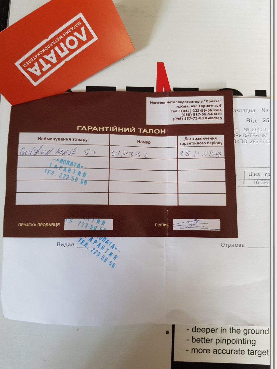 ДОброго вечора камради.Продам свою маску з додатковою катушкою детеч 10 на 12 дюймів катушка ще на гарантії до 14 08 2019 прибор також на гарантії до 25 11 2019 . Метало детектор абсолютно робочий без глюків посторонього втручання не було . Батарейки тримають повноціний вихід. Продається все що є на фото на підлокотніку є лехкі потертості але на роботу не впливає до прибора ставився обережно використовувався з чихлами з перших днів покупки зі стандартною катушкою було виходів до 8 не більше за все прошу 13800 за детельною інформацією чи додатковими фото звиртайтесь в приват або за номером телефону 0982301143 .