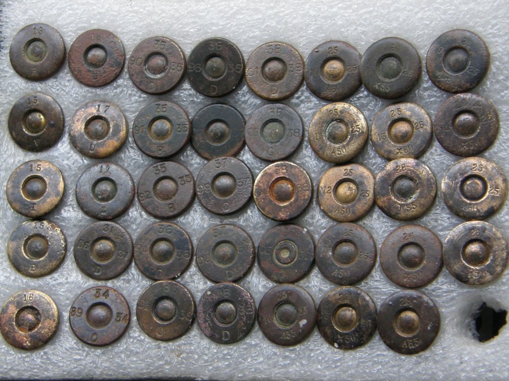 Просматривал подборку 6,5 х 54 R Nl. на www.municion.org Странно, но даже там , с этим периодом в данных маркировках - ,,туго,, не то слово ( две или три шт.) Жаль, далеко , выложил - бы свои макеты , по маркерам. Есть ,именно , по этому году производства - С ув .-