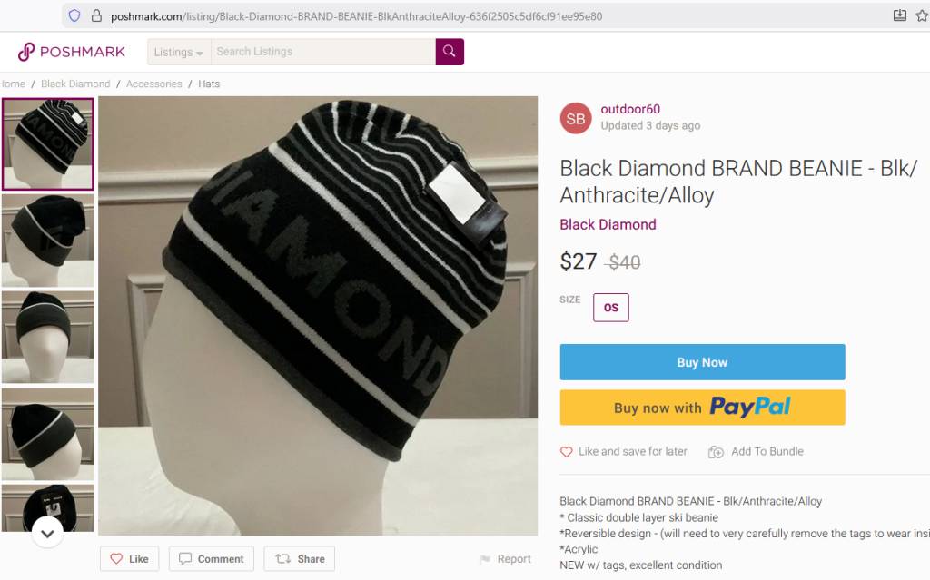 7. Продано! Шапка Black Diamond Brand Beanie (США). В отличном состоянии. Цена - 150 грн. Black Diamond – известный производитель снаряжения для альпинизма, лыжного и горных видов спорта. Цена шапки в США: 27$ (1134 грн). Выполнена из достаточно легкой ткани. Тканые логотипы. Двухсторонний дизайн. Шапку можно носить с названием бренда и чередующимися полосками, или только с логотипом и полоской. Размер - универсальный (замеры на 2-м фото). Материал: 100% Acrylic. Цвет: черный, серый, белый. Вес - 62 г. На голове 59 см сидит достаточно свободно. Модель на сайте (27$ / 1134 грн) - https://poshmark.com/listing/Black-Diamond-BRAND-BEANIE-BlkAnthraciteAlloy-636f2505c5df6cf91ee95e80 Цена в Украине (1658 грн) - https://northwall.com.ua/shapka-black-diamond-brand-beanie-721004/