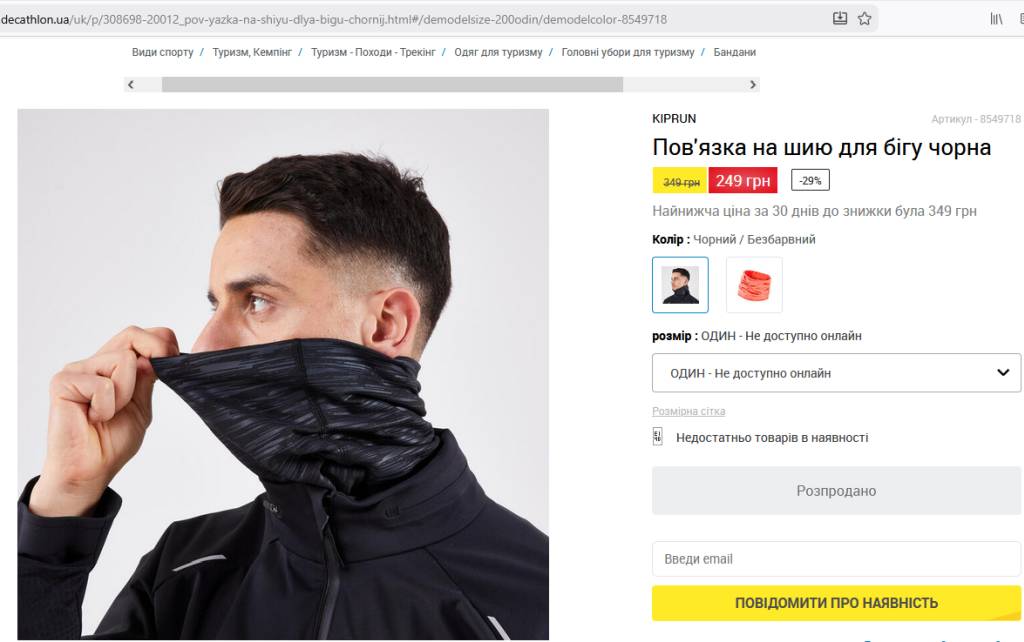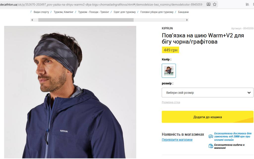 8. Продано! Повязка на шею Decathlon Running Neck Warm+ (Франция). Новая. Цена - 100 грн. Модель: 308698. Пошита в июне 2022 года (маркировка 202206). Цена производителя: 249 грн (2022 г), 449 грн (2025 г). Повязка еще никем не носилась и стянута отрезной полоской ткани с этикетками. Конструкция позволяет использовать ее как повязку на шею, баф, шапку. Выполнена из эластичной ткани средней плотности (200 gsm). Материал: 91% Polyester, 9% Elastane. Внешняя сторона гладкая, внутри флис с начесом. Размер - универсальный. Цвет: Grey (темно-серый). Вес - 52 г. Модель на сайте производителя - https://www.decathlon.ua/uk/p/30869...tml#/demodelsize-200odin/demodelcolor-8549718 https://www.decathlon.ua/uk/p/35267...yu-warmv2-dlya-bigu-chornaslashgrafitova.html