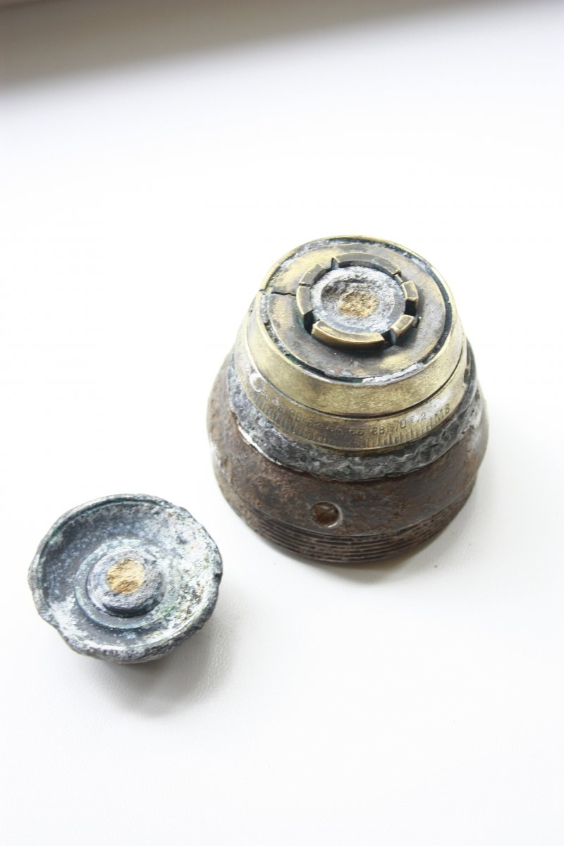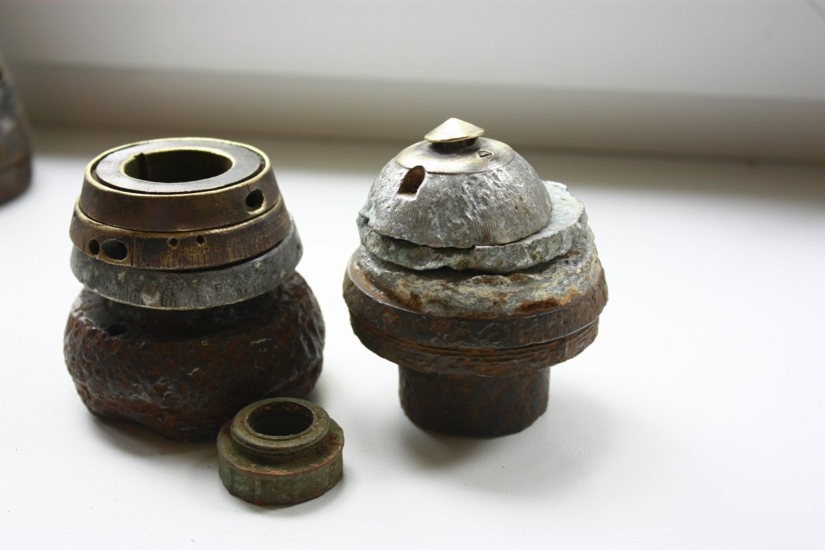 "Сборная солянка" - за 30грн переходники к шрапнельникам, остатки трубки м8, русская 22-сек. трубка (или то что от неё осталось) + колпаки к шрапнельникам с клеймом СТЗ (Самарский Трубочный завод)