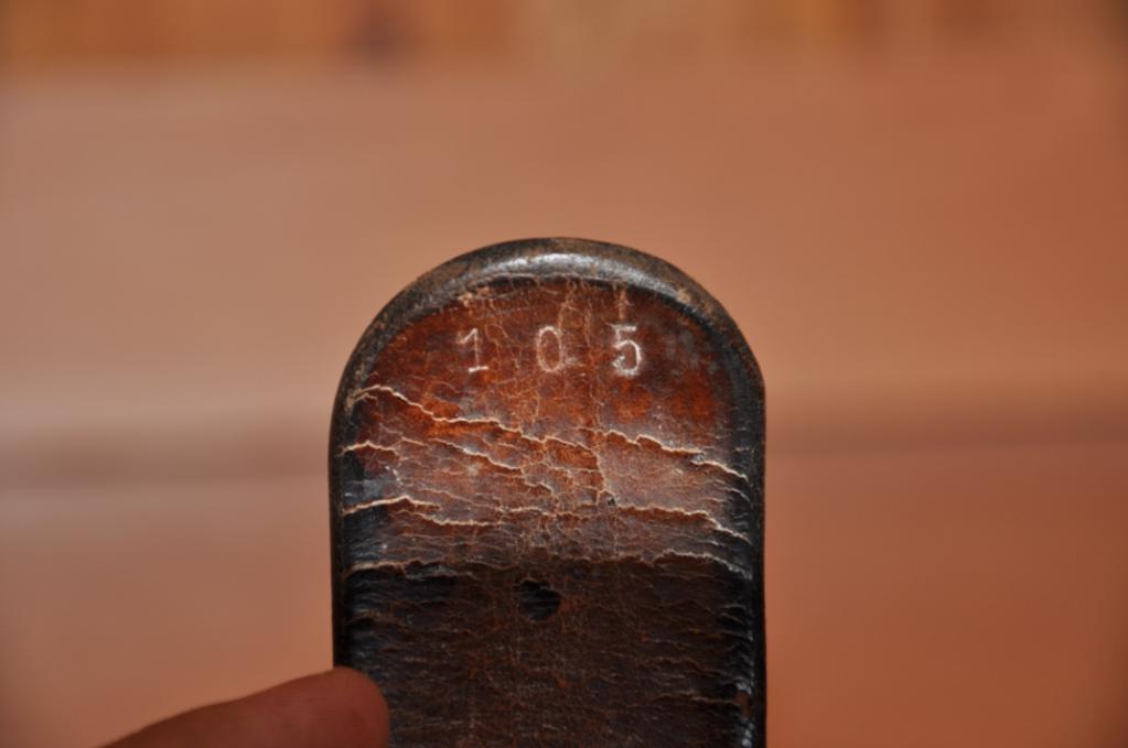 Думаю що ремінь не перепрошивався, так як його привезли після воєнний час так він і дотепер пролежав на горощі, тому такий стан. Цікаво чи можна знайти власника за номером 105. Це реально??? Що означають клейма??? Може у когось є ссилки на літ-ру по цим клеймам. Дуже цікаво знати що цей ремінь собою представляє. Буду дуже вдясним.