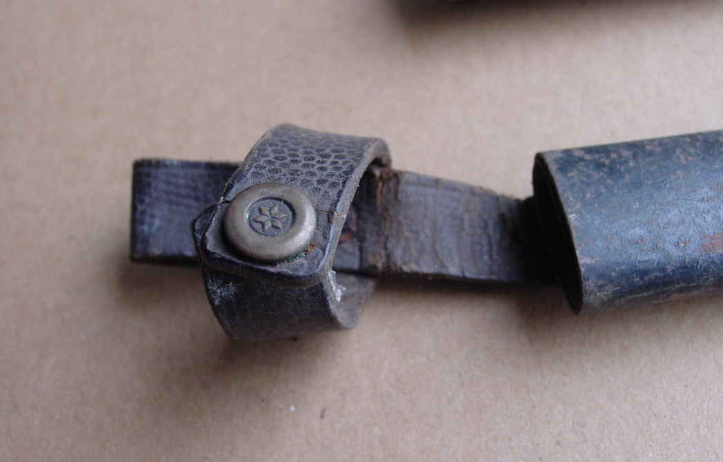 У меня под рукой эта модель с остатками родного черного лака на приборе рукояти (я к тому, что рукоять не тронута), и могу сказать, что заклепки переставлялись. Они не его.