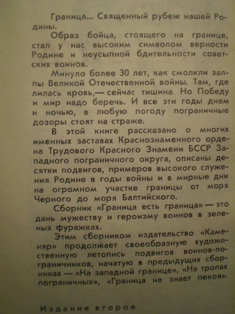 Граница есть граница. Сборник произведений о пограничниках Западного пограничного. Львов Каменяр 1977г. 304 с., с фотографиями. Твердый переплет, Обычный формат. Состояние: очень хорошее. Предоплата на карту ПриватБанка. 40грн. ( 7 грн. УкрПочта), Новая Почта за счет получателя.