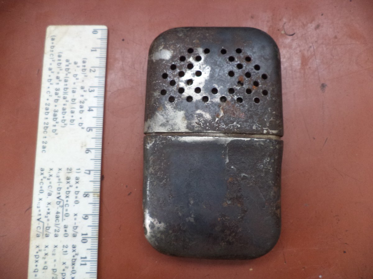 Доброго времени помогите пожалуйста с определением. Нашёл вот такую грелку в лесу на позициях были такие по войне и у кого.Я видел такие есть современные и в чём отличие.