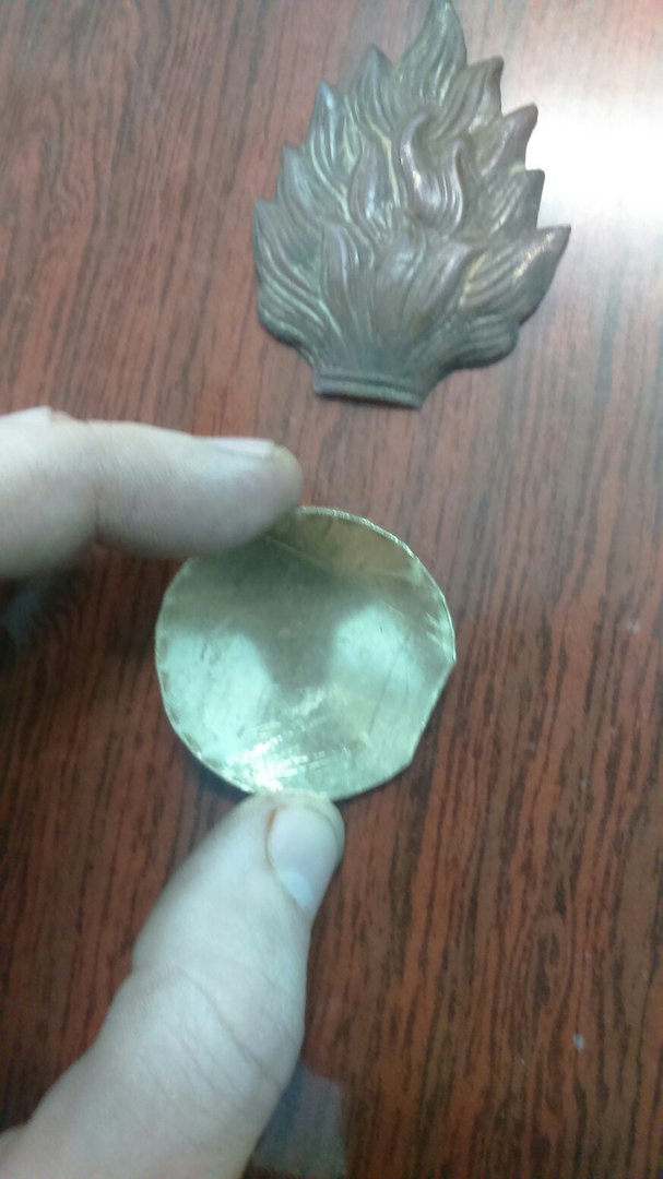 Мне не принципиально, все равно в рамку. родную гранату найти трудно, новодел мне составило труда сделать. после правильного застаривания будет смотреться нормально. не факт, что копаная нижняя часть будет смотреться с моим пламенем органично, сохраны то разные бывают