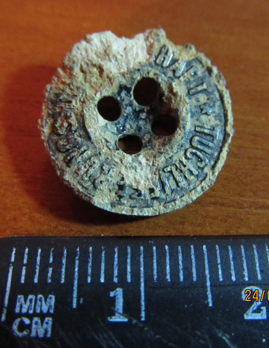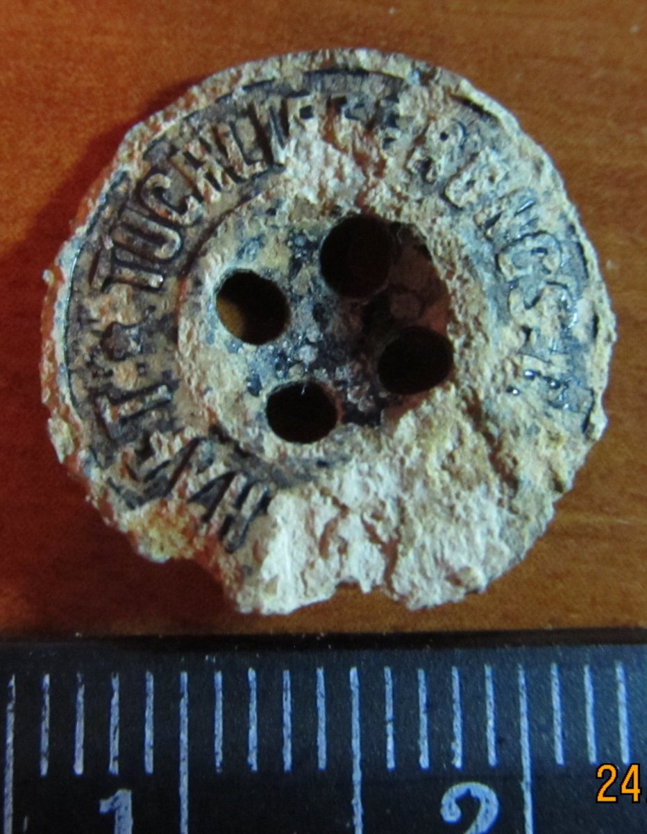 Пуговичка найдена на позициях ПМВ. Подскажите пожалуйста, что можете по ней сказать, в т.ч. надпись: "...HAFT * TUCHL _ _ ERVNGS C..." Прошу в теме писать по существу. Спасибо. С ув.