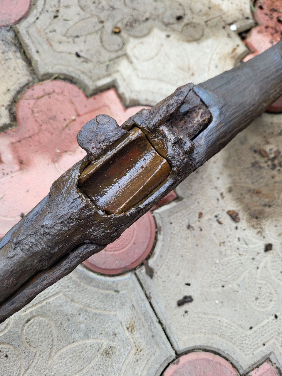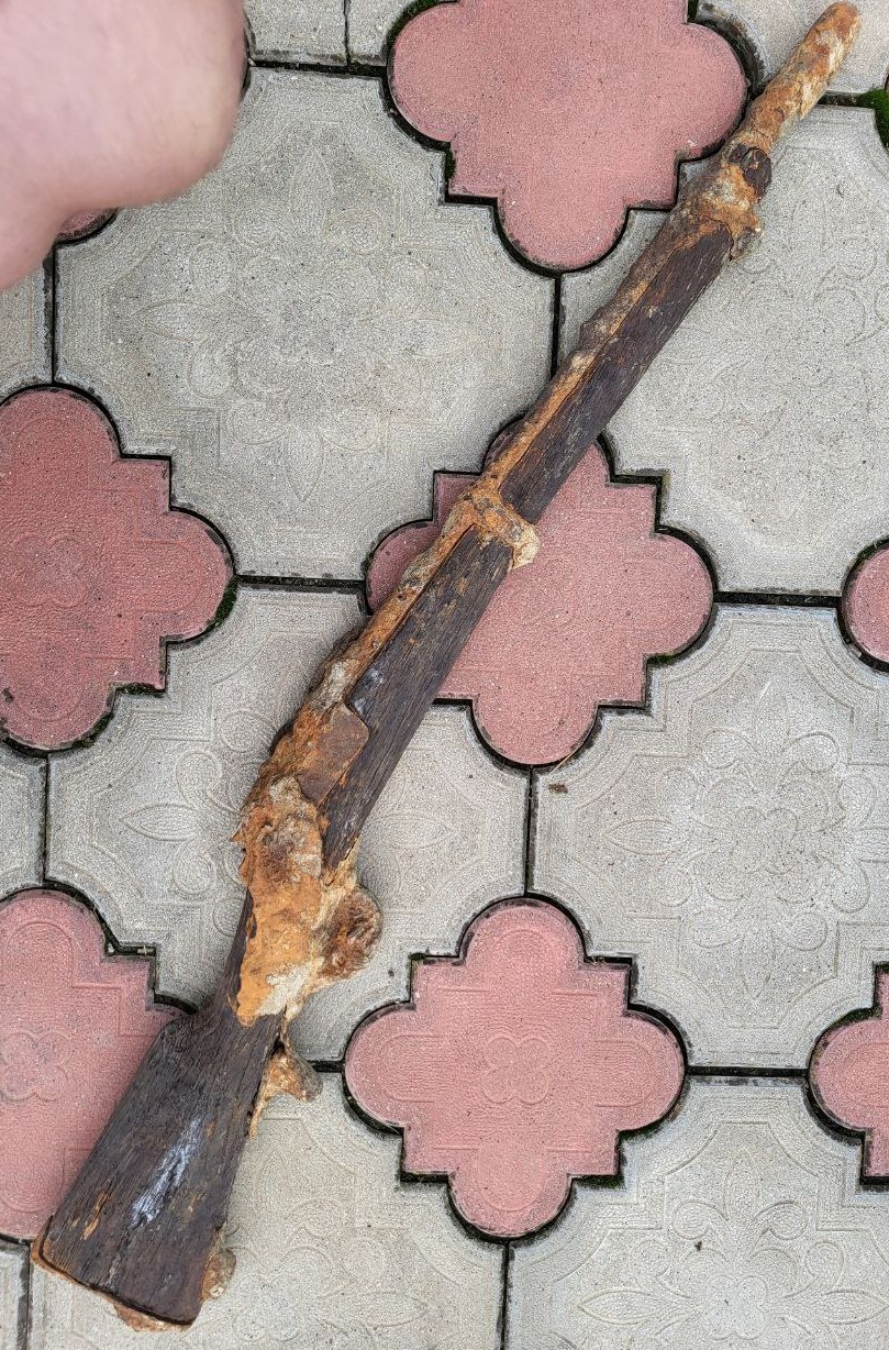 Приветствую. 1 - замочить предмет в дистилированной воде. Для обессоливания, уменьшения доступа кислорода и сохранений формы от деформаций. 2 - дерево сохраните - как ММГ это уже не получиться сделать, но как антуражный предмет в коллекцию, при должном уровне консервации (не дешевом) - будет востребован. Но без дерева, без антуража - это сильно корродированный макет с малой востребованностью. Потому постарайтесь сохранить его в этом виде. Не старайтесь его реставрировать - этот предмет уже не для реставрации, а для закрепления и сохранения как антуражная вещь - как это называется в исторической и археологической науке - комплекс. Ну и в силу этого не очень высокой цены. Хотя Верндли проходили по аукционам давно.