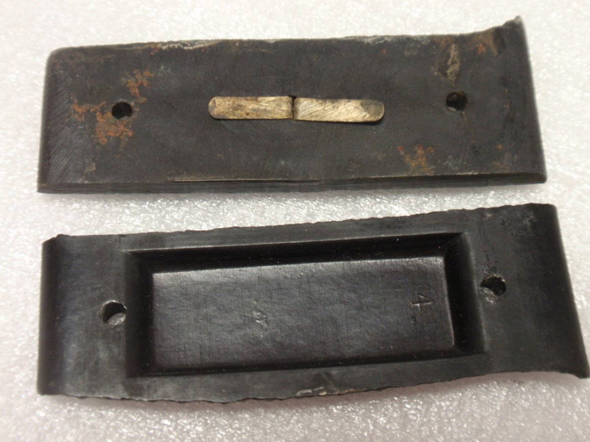А кто сказал, что обязательно были 2!!! загиба? Вот накладки раннего Пака (на винтах, как и его парадники): А этот "поздний" такой хотя не стальной, так что может фейк?))) А вообще есть документ, не буду показывать скан, думаю моего перевода достаточно: "...2. Рукоять отливается из гарантированно непористой стали и тщательно никелируется. Канты полируются. С обеих сторон накладки рукояти из эбонита или прессованого пластика насыщенно-чёрного цвета закрепляются заклёпками. На передней стороне ножа в средине накладки должен быть вставлен знак ГЮ и так закреплён шплинтами, чтобы предотвратить возможность выпадания..." Смысл в том, что каждый производитель сам решал, как выполнить предписание РЦМ от 1936 г. Более раннее описание знака ГЮ (от 1933г.) имеет размеры, но не указание по креплению... Так что может не стоит опять тянуть резину на 5-... стр.?