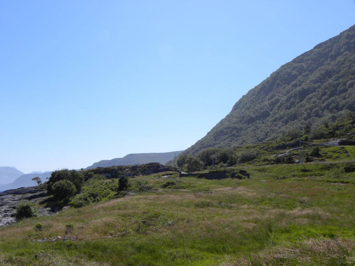 Ну и чуток справочной информации. Мы ж военно-исторический форум?) Фото именно оттуда. Подпись была типа "Военнопленные и немецкие солдаты строят военные укрепления в Квинтесете". Военнопленных вы можете опознать по раскатанным пилоткам и обрезаным шинелями . И сразу понятно, кто тягает камни, а кто курит и веселится. За рулем, естественно норвежское Сопротивление. Дом, что слева до сих пор жив. Теперь о самом УР-е Наложил схему на Гугль . Кому совсем уж интересно-переводите с норвежского, мне в лом. Лагерь русских военнопленных под цифрами 72-75, перед минным полем. Надеюсь было интересно. Сфоткал на тех скалах)