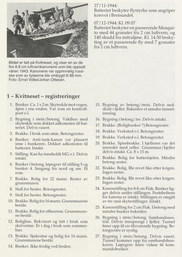 Во время войны , немцы, оккупировавшие Норвегию сильно ссались, что англичане начнут устраивать им Нарвик повсеместно, по этому понастроили по всему побережью множество фортификаций. Реально , в какое бы место не попал-обязательно что-то долговременно-бетонное обнаружится. Даже в самых ебенях... Я потом этот вопрос начал потщательней изучать, нашел литературку с описанием всего этого безобразия по округам-коммунам. Ниже будут фрагменты оттель.