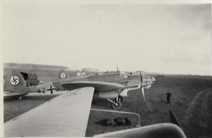 Комбинация навигационной ошибки и плохой погоды привела ранним утром 3 июня 1940 года к вынужденной посадке в Швеции к северо-западу от Фроствиккена еще один He 111 F6+NL. В том же году разбитый самолет был возвращен Германии за исключением изъятого бомбардировочного прицела и навигационного оборудования. Экипаж: обер-лейтенант Луис Фердинанд Вентц, унтер-офицеры Отто Шмидт и Людвиг Фолк. Четвертый на снимке местный, гражданский инспектор Артур Кланке. Всего в Швеции разбились или совершили вынужденную посадку по официальным данным шведской стороны минимум 10 He 111 (не считая упавших у побережья и машин иных типов).