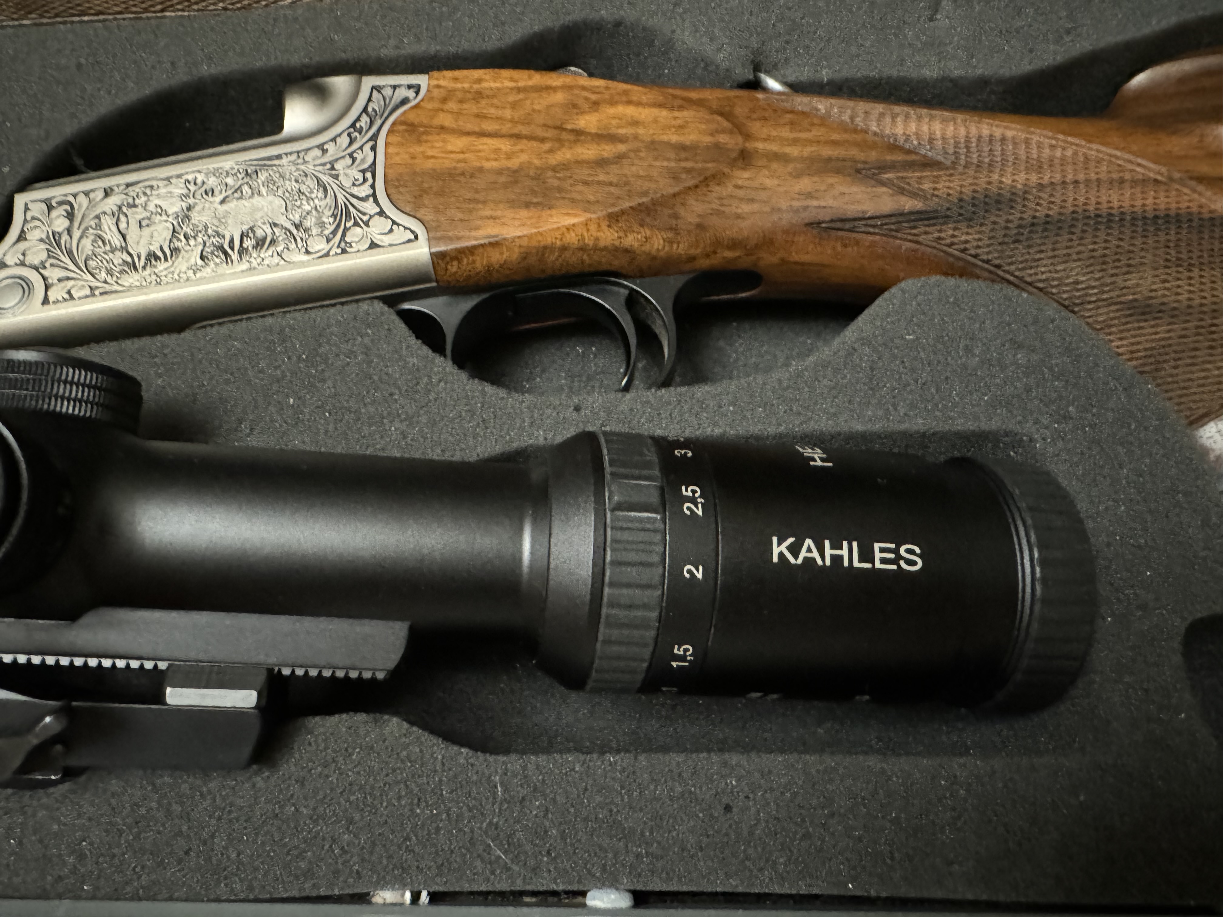 Продається комплектом : приціл KAHLES HELIA CSX з підсвіткою, каліматорний приціл DOCTER. Приціли на оригінальних швидкозйомних кріпленнях HEYM.
