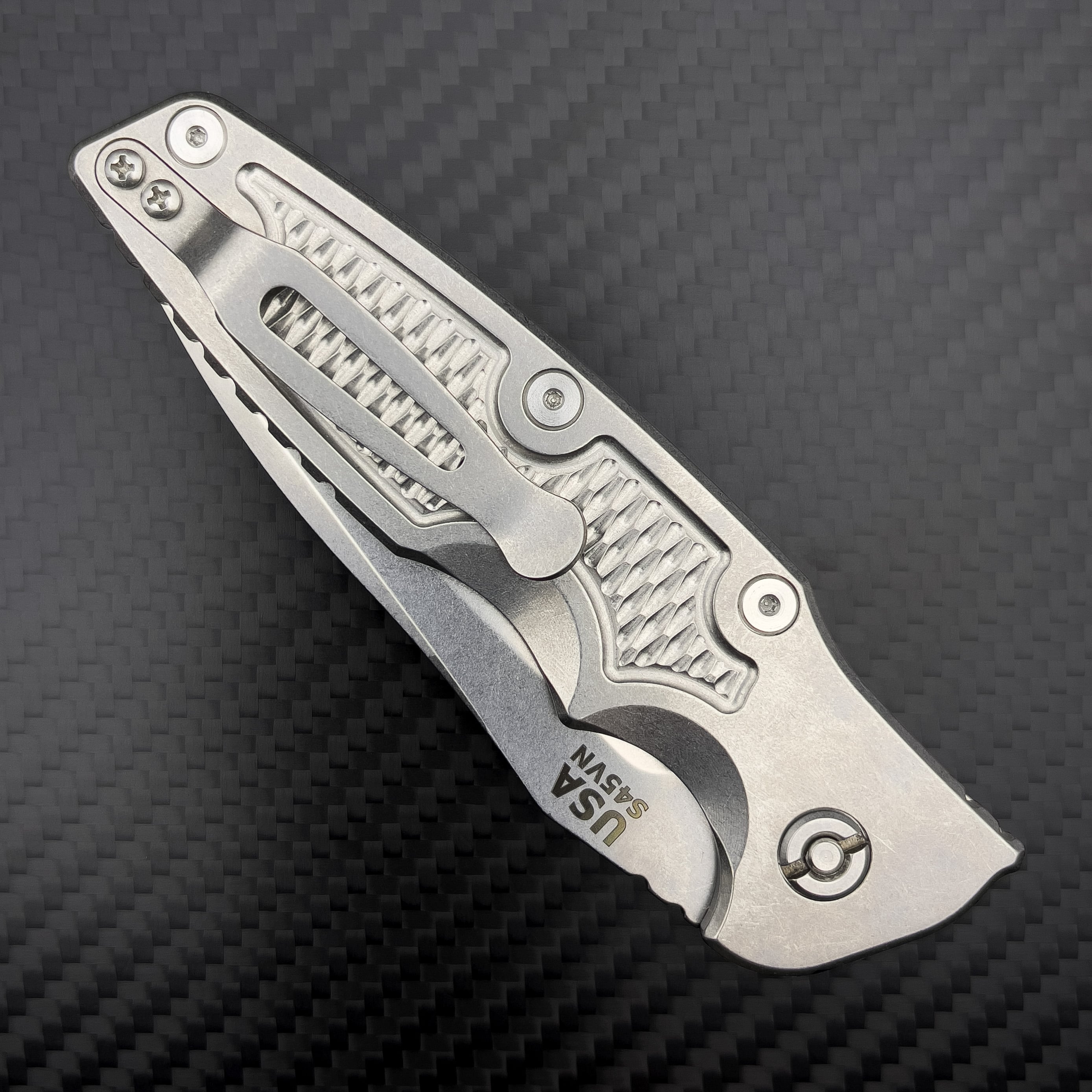 Маємо неймовірну ергономіку, це другий ніж на пам’яті, коли я сам собі казав, що його наче робили під мене; приємну, але чіпку текстуру на руків’ї з обох сторін; шайби в осьовому, а отже 0 люфтів і гладку механіку; найзбалансованішу сталь на ножах Ріка – S45VN. Разом вийшло одним словом – кайфово.