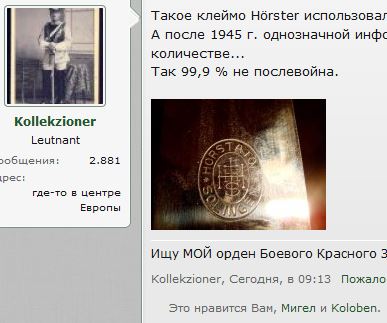 Такое клеймо Hörster использовал при выпуске бритв, хиршей и парадников ещё до и в период 3. Рейха.