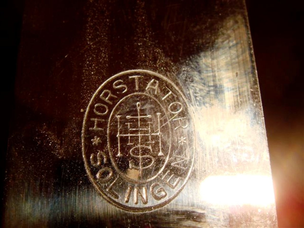 клеймо "меч с буквами H. H. S." было запатентовано в 1923 году. в период 1933-1945 годов Фирма "E. & F. HORSTER SOLINGEN" выпускала холодное оружие, в том числе, и коммерческое.