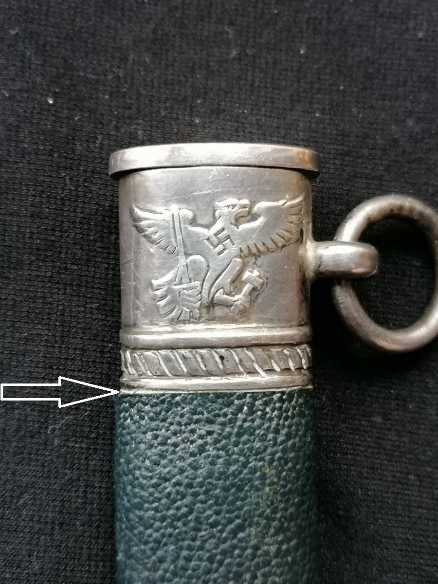Думаю, кинжал оригинальный. Но от покупки я бы именного этого предмета я бы отказался, слишком много с ним поработали. Новая кожа, лезвие прошло оработку поэтому клеймо немного не типично и рукоять скорее всего имеет новую основу (дерево), а так же ряд других мелких признаков.