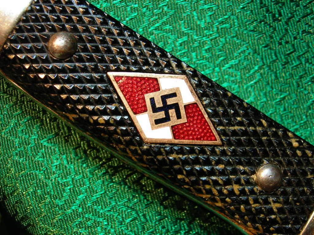 Беру слова на счёт закрыть обратно.Неоднократно ,в других темах ссылались на Wittmann.Нашёл свой(я думаю).Там кнопка на подвесе на другой стороне и кожа совсем другая.(или это зависит от производителя ножен)И ,к стати, эмблема(судя по фото)solid red.http://www.wwiidaggers.com/26476.htm