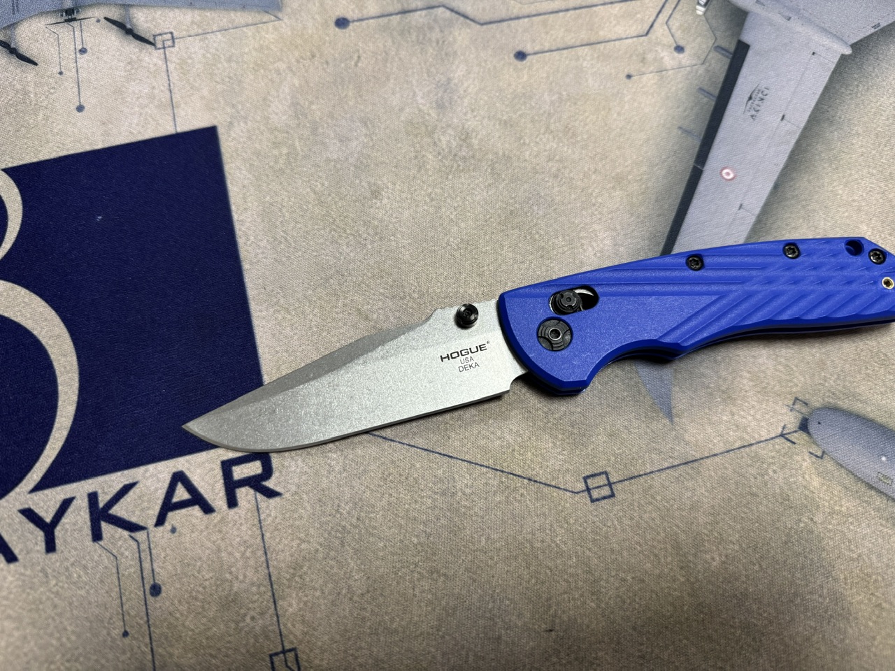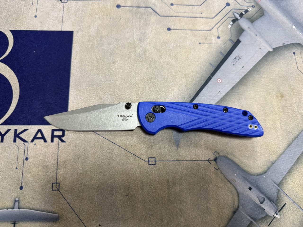 Hogue Deka Blue Polymer CPM Magnacut Продам ніж, в ідеальному стані, без будь-яких косяків Ідеальний екземпляр з шовковою механікою на шайбах Характеристики: Сталь: CPM Magnacut Руківʼя: полімер Товщина клинка: 2.4 мм (ріже як лазер) Довжина клинка: 83 мм Вага: всього 60 грам Купувався на Blade HQ, повний заводський комплект Зроблений в США Ціна: 5300₴