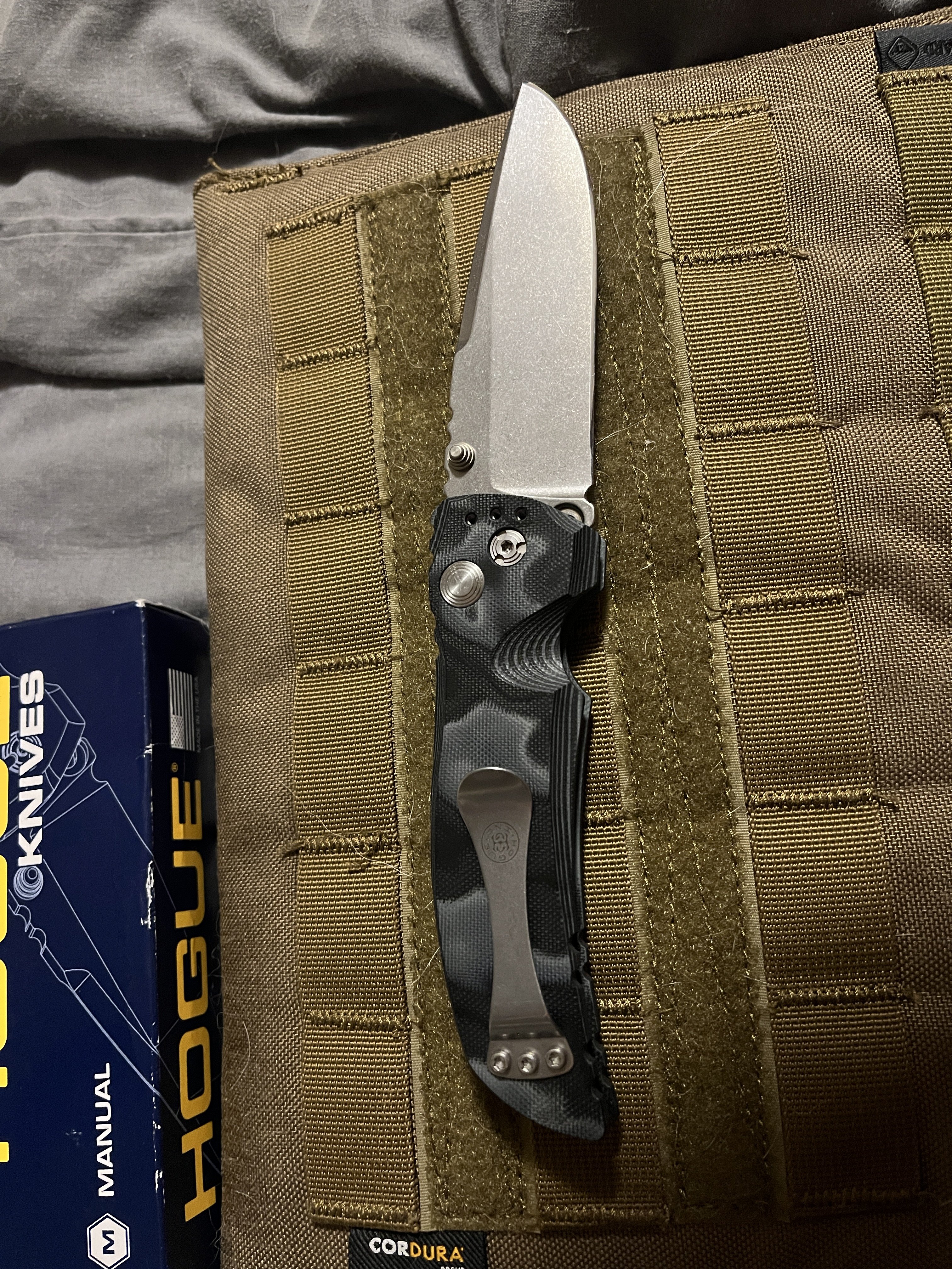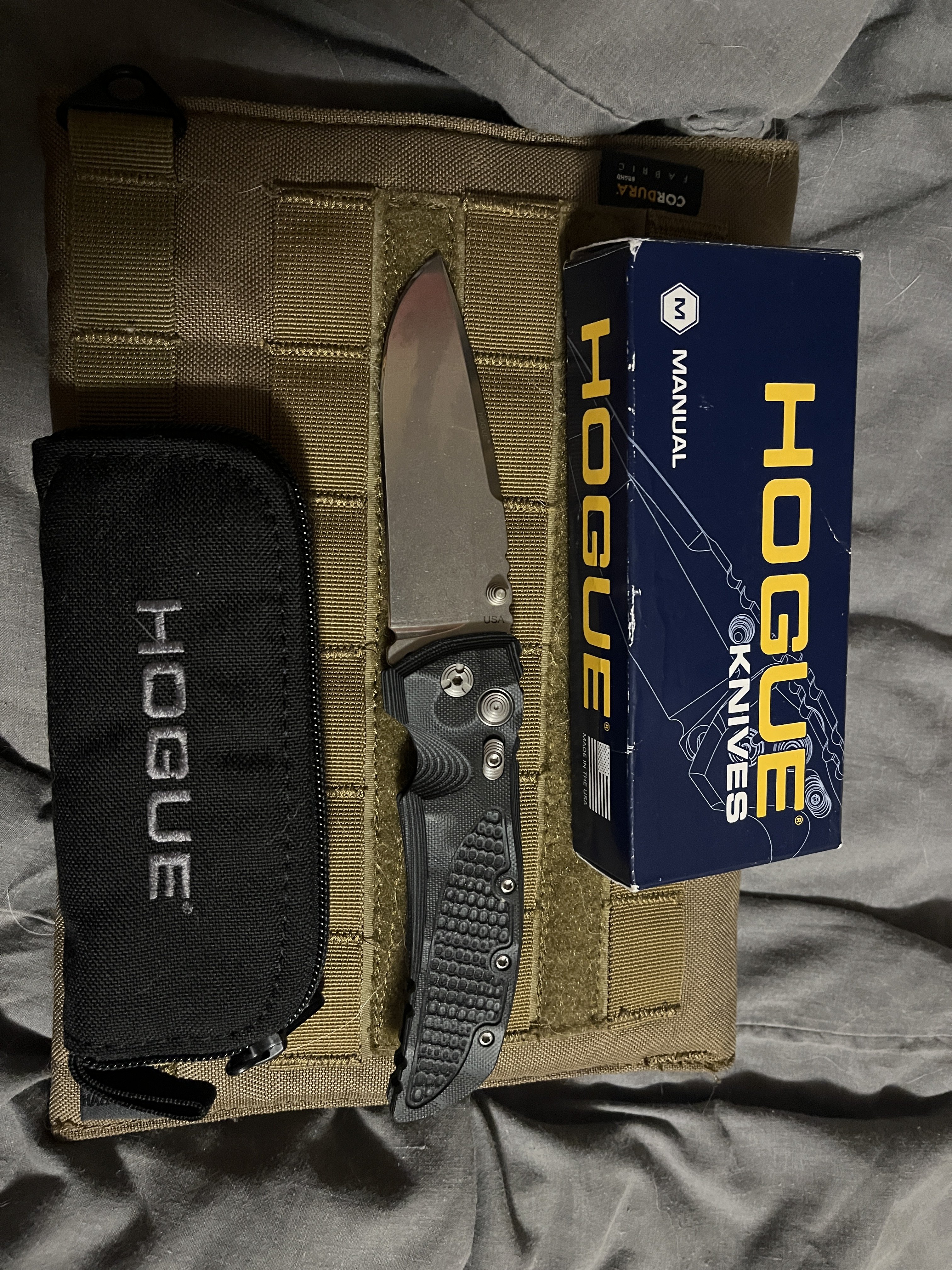 Продам hogue ex-01 Версія з клином 4" Руківʼя чорний g-mascus Стан нового,повний комплект. Рідний клин танто був замінений на spear point.