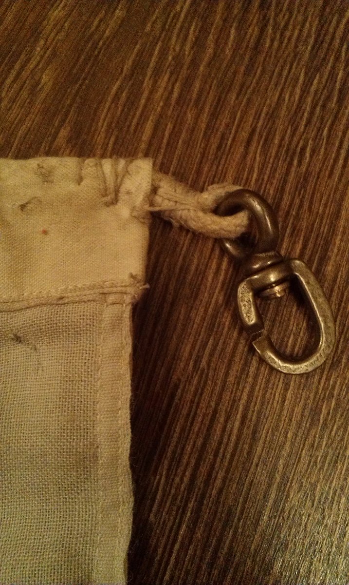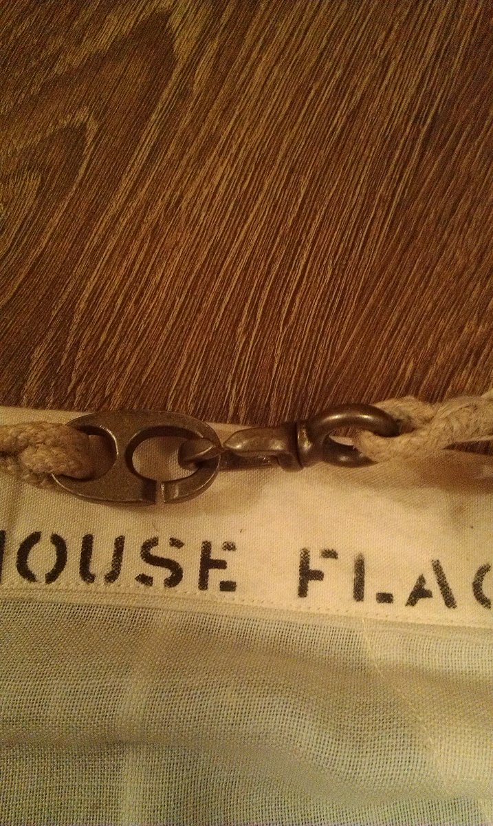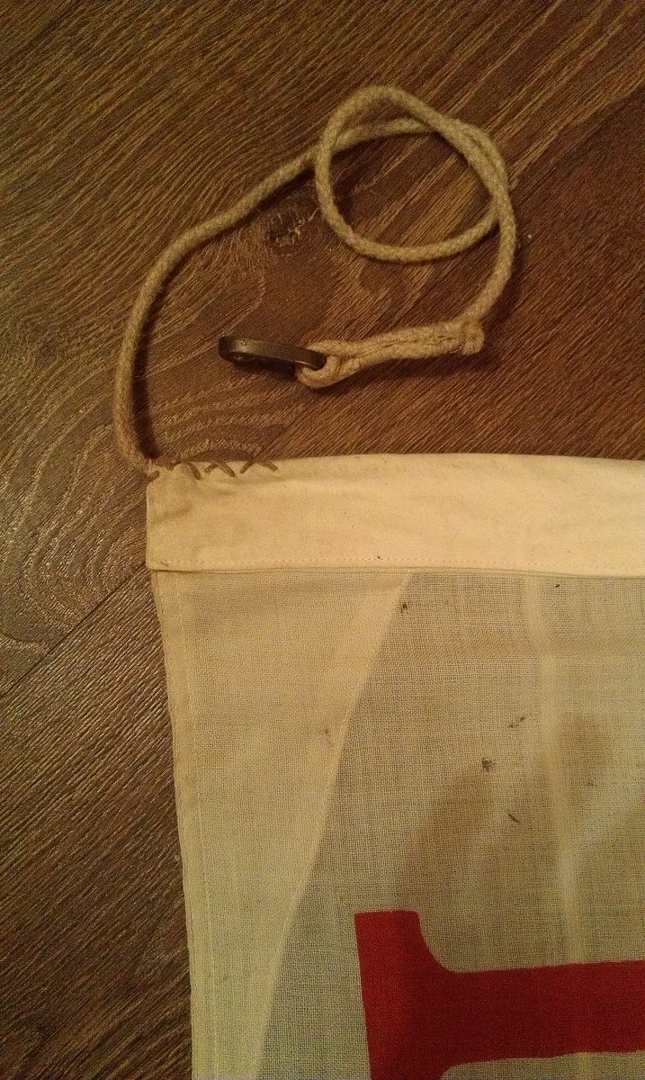 Доброго здоровья! Выменял сегодня флаг лондонской компании General Steam Navigation Co. http://ogeraldike.ru/news/item/f00/s02/n0000253/index.shtml http://collections.rmg.co.uk/collections/objects/1069.html В оригинальности у меня сомнений нет. От него так и веет стариной и по виду и по запаху. Материал-шерсть, льняная верёвка и строчка, бронзовые "зацепы-карабины". Размер 118/185 см. Возможно ли определить период? С уважением.