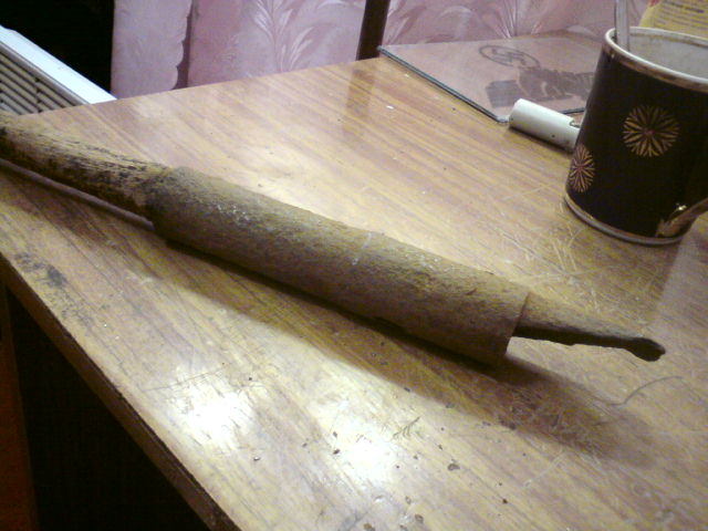 на фото 3-4 обломанный черенок(дерево) с обломанным же держаком какого то инвентаря(типа лопата,грабли,съемник плодов ) имхо