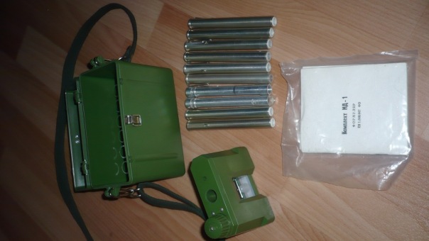Цена 150 грн. Оплата на карту Приват-банка 5211-5374-4840-7846 (Савинов В.И.). Поедет по Украине за счёт покупателя - Новая почта. (*Кроме АР Крым и зоны АТО) Все рабочее, пьезоэлемент зарядника функционирует. Измеритель дозы ИД-1 обеспечивает измерение поглощенных доз гамма-нейтронного излучения в диапазоне от 20 до 500 рад. Саморазряд измерителя дозы ИД-1 не превышает в нормальных условиях одного деления в сутки и двух делений за 150 часов. В комплект входят 10 измерителей дозы и зарядное устройство на пьезоэлементе. Для выставления риски шкалыдозиметра на "0" не требуется внешний источник питания. Дозиметр ИД-1 выполнен в виде авторучки (карандаша) и состоит из ионизационной камеры, электроскопа, конденсатора, микроскопа и контактной группы в алюминиевом корпусе. При воздействии ионизирующих излучений в объёме заряженной ионизационной камеры, цилиндрические электроды которые выполнены из тканеэквивалентной пластмассы, возникает ток, уменьшающий потенциал камеры и связанного с ней конденсатора. При этом нить электроскопа, на которую подается потенциал конденсатора, отклоняется и ее отклонение измеряется с помощью микроскопа по шкале, отградуированной в радах. Шкала имеет 25 делений, цена деления 20 Рад. Для обеспечения линейности шкалы зарядный потенциал ионизационной камеры выбран в пределах 180-250 В. Через контактную группу дозиметра происходит его заряд с помощью зарядного устройства; после заряда контактная группа предохраняет дозиметр от разряда. Зарядное устройство содержит 4 параллельно соединенных пьезоэлемента и механический усилитель, давящий на пьезоэлементы; давление создается вращающейся ручкой. Для зарядки дозиметр ИД-1 вставляется контактной группой в зарядное устройство; при надавливании на дозиметр на центральный электрод ионизационной камеры подается плюс, на внешний электрод-минус. При этом дозиметр устанавливается по его шкале на нуль. Количество дозиметров - 3 штуки.