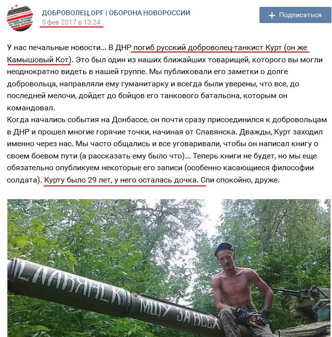 Гончаров Михаил "Курт" (Ангарск, 29/03/87) убит до 05/02/17