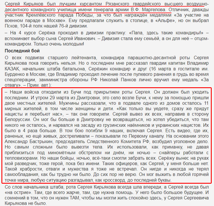 "... о всех "подвигах" старшего лейтенанта в Буче пока говорить нельзя ..."
