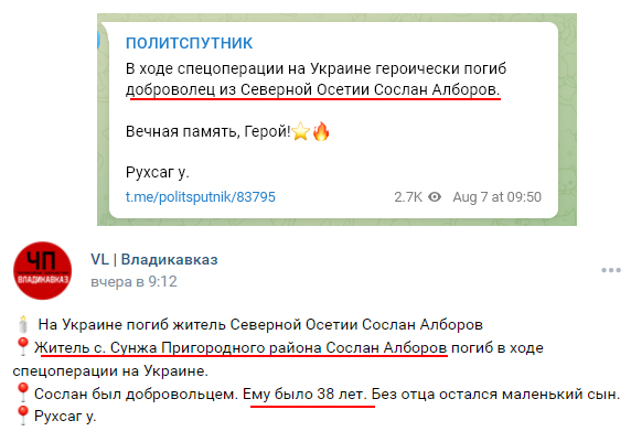38-летний героический житель североосетинской Сунжи, Сослан Алборов добровольно поехал в Украину и теперь больше не житель.