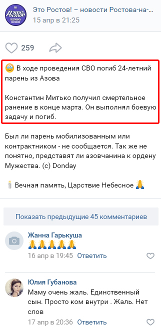 24-летний парень из Азова по имени Константин Митько был денацифицирован в ходе проведения СВОВУ в конце марта 2023 года.