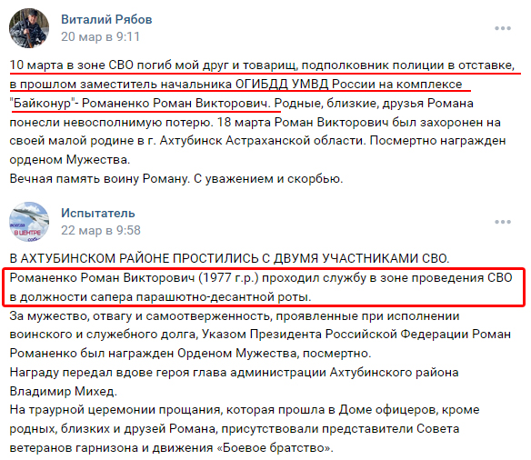 Отставной повелитель космических полосатых палок, подполковник полиции Романенко Роман Викторович, 1977 г.р., по кличке "Протон" из Байконура решил тряхнуть стариной в должности сапера #31одшбр и 10 марта 2023 его старина насмерть отвалился.