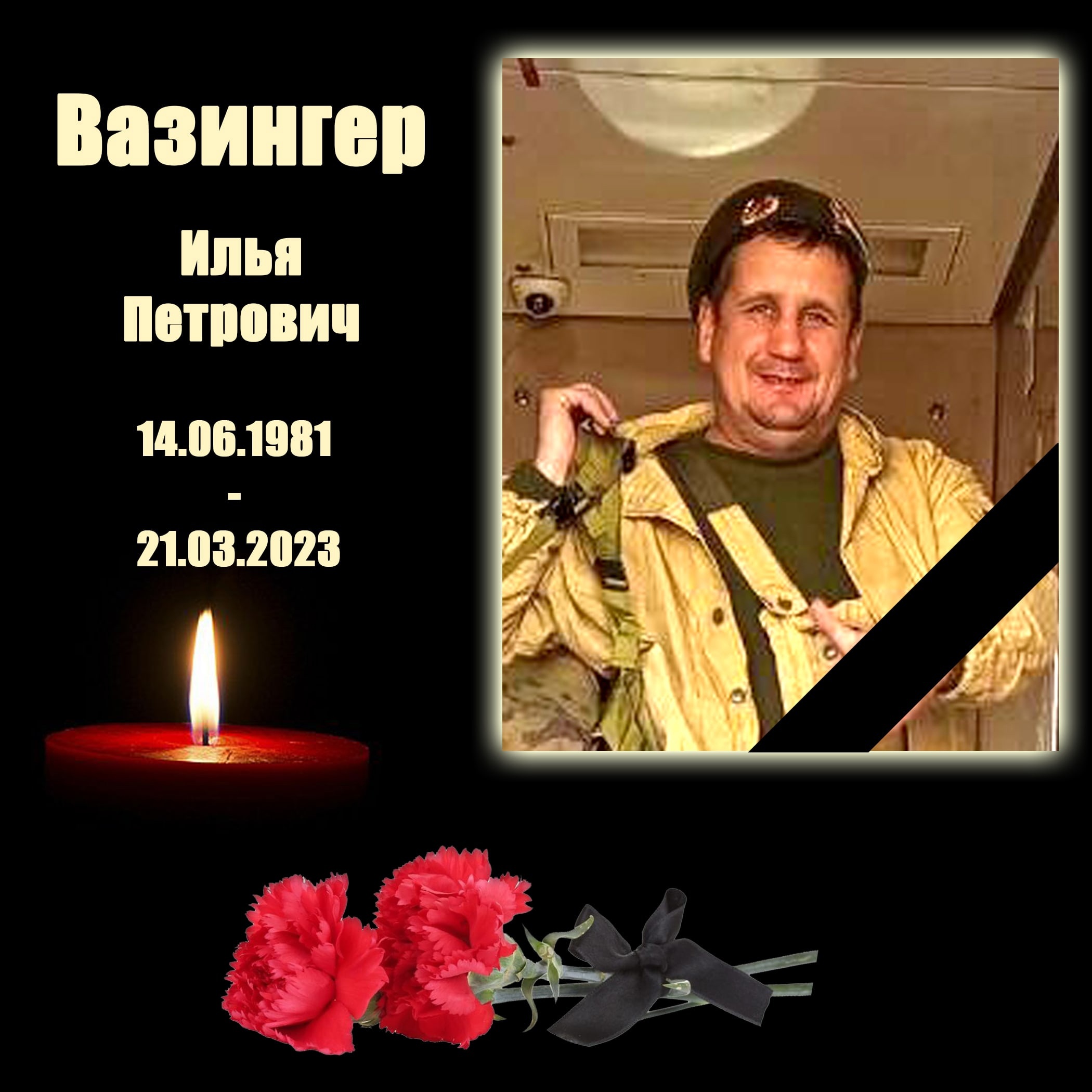 Уже нежитель города Куйбышев Новосибирской обл., Вазингер Илья Петрович, 1981 г.р., несмотря на фамилию, всегда отличался высокой ебанутостью и любовью к жопе П., добровольно убивал в Чечне, сам отправился в СВОВУ и 21/3/23 совершенно добровольно Вазингер пошел по вагине прямо в ад, нахер. Ну, хоть пристегнулся: безорпасность - превыше всего!