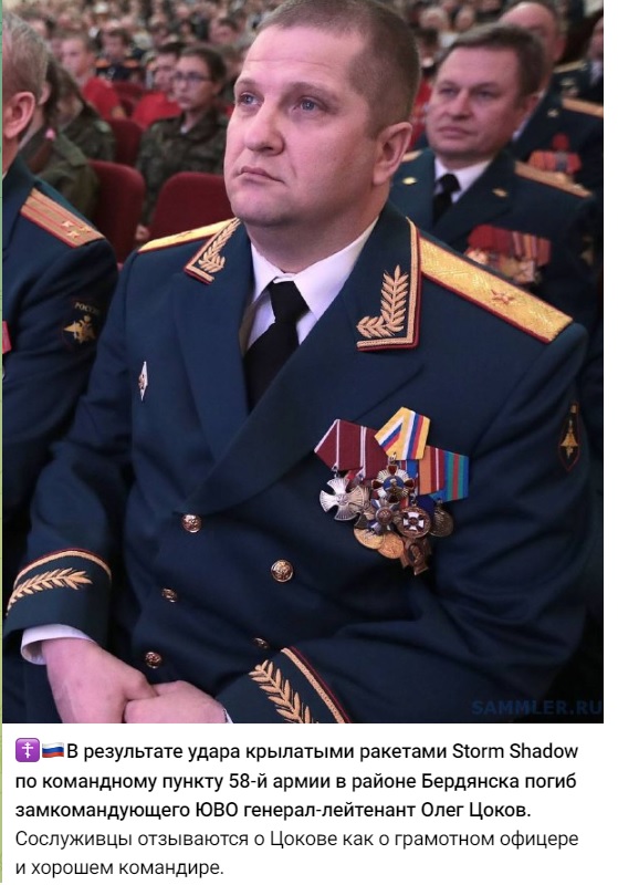 "В районі Бердянська, було ліквідовано російського генерал-лейтенанта Цокова Олега Юрійовича."