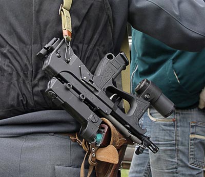 Который слева модификации "S" - редкая экспереминальная модель, отличаеться от стандартного коротким стволом (500 мм) у стандартного (600 мм) и увеличеной скорострельностью (1700 выст/мин. против 800-900 у стандартного)