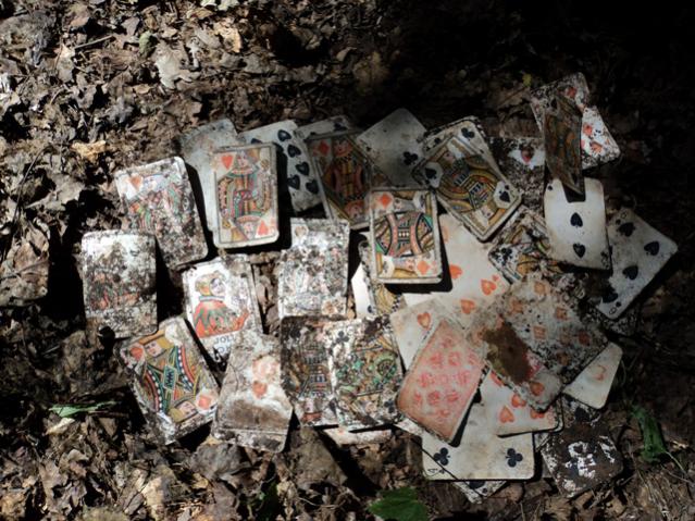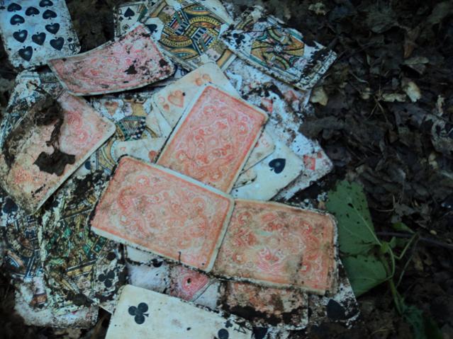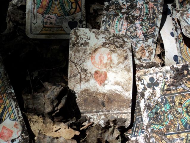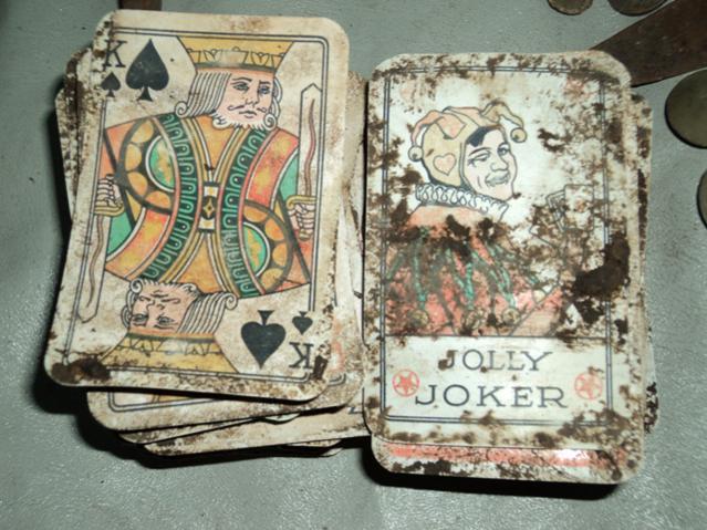 Товарищ выкопал на немецком стойбище близ входа в блиндаж пластиковые игральные карты, 53 штуки. Не хватает туза треф. Были прикопаны с банками, бутылками, порошком против вшей и прочим мусором войны. Что за карты? Находил ли кто игральные карты времён войны? Если да, просьба выставлять фото карт в эту тему.