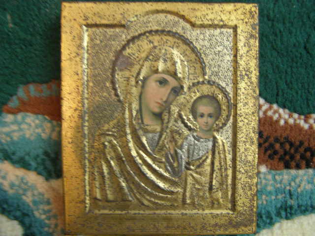икона недорогая, т.называемая "катанка". ,т.е. литография на жести.. 150 грн. Киот стоит больше - -400 грн.