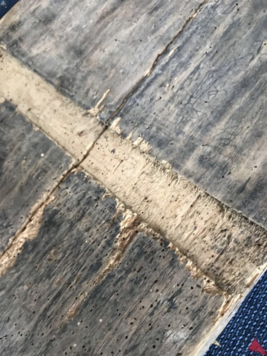 Добрый вечер. К сожалению эту икону уже нет смысла реставрировать, дерево труха.