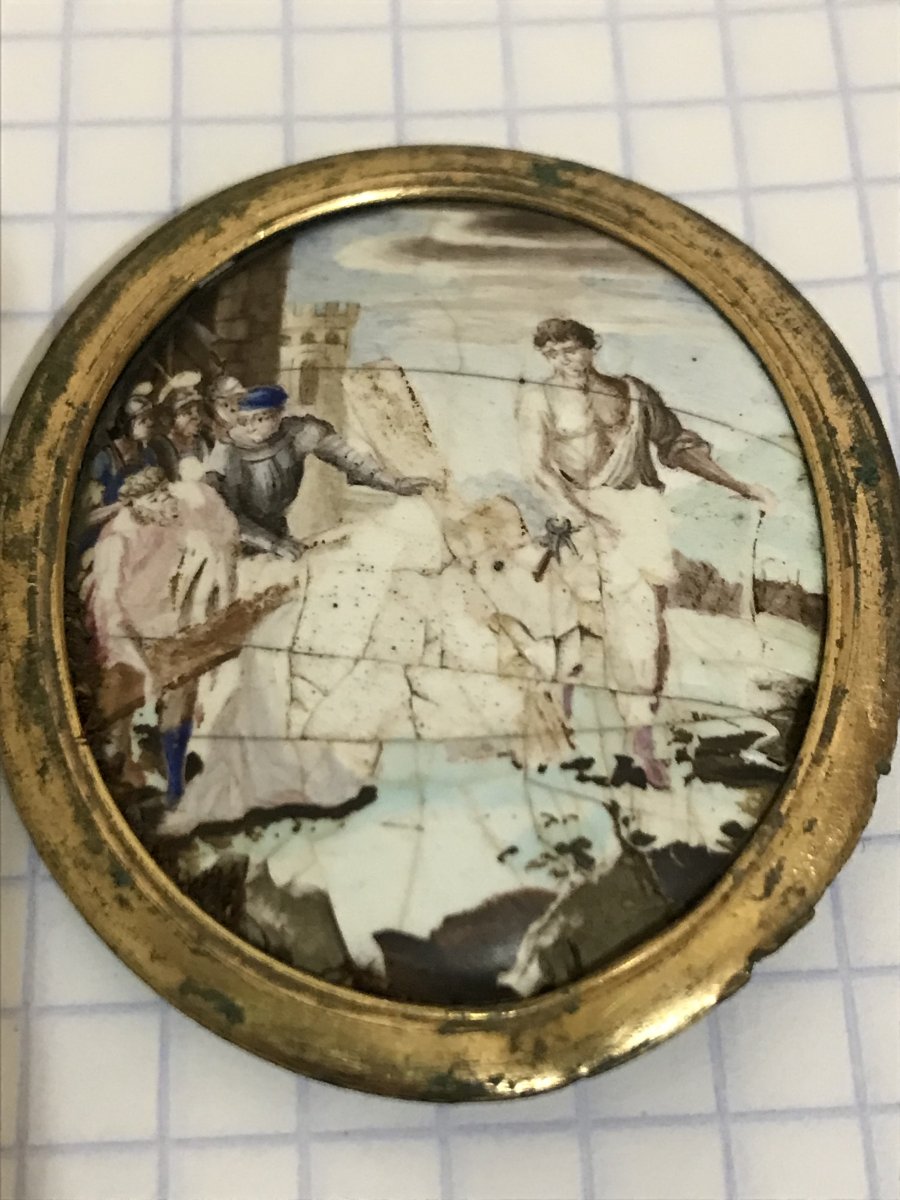 Размер и сюжет указывает на то что это с церковной книги. Оклад Евангелие был украшен таким сюжетом. Или митра священника.