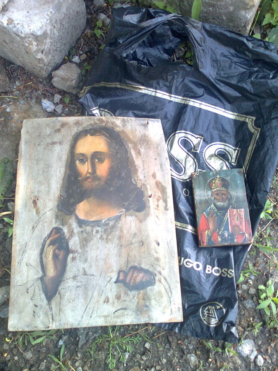 вот такие вещи мона найти в разрушенных домах, судя по отверствиям от гвоздей, то ранее были оклады и киоты, но чьито шаловливые ручки не пожалели их итак ,Камрады, -извечный вопрос -сколько стоит, и стоит ли вообще