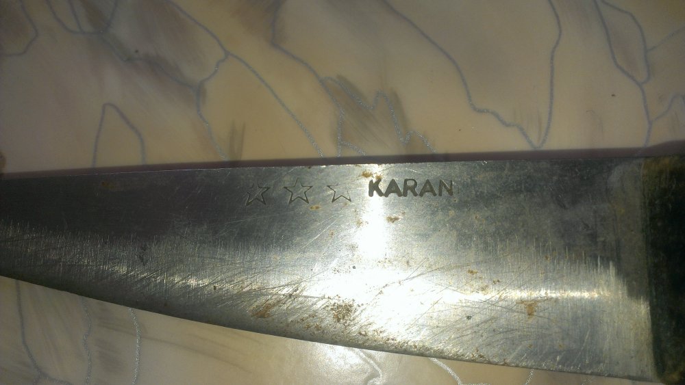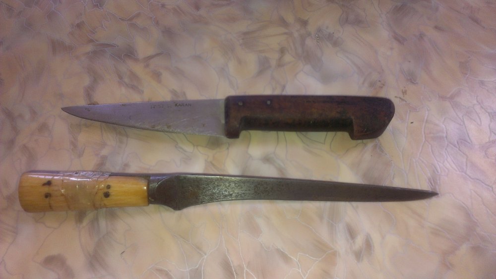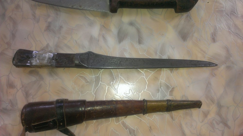от рукоятки осталась половинка,сама половинка да из кости и целая. толщина клинка возле рукояти 0.5 см