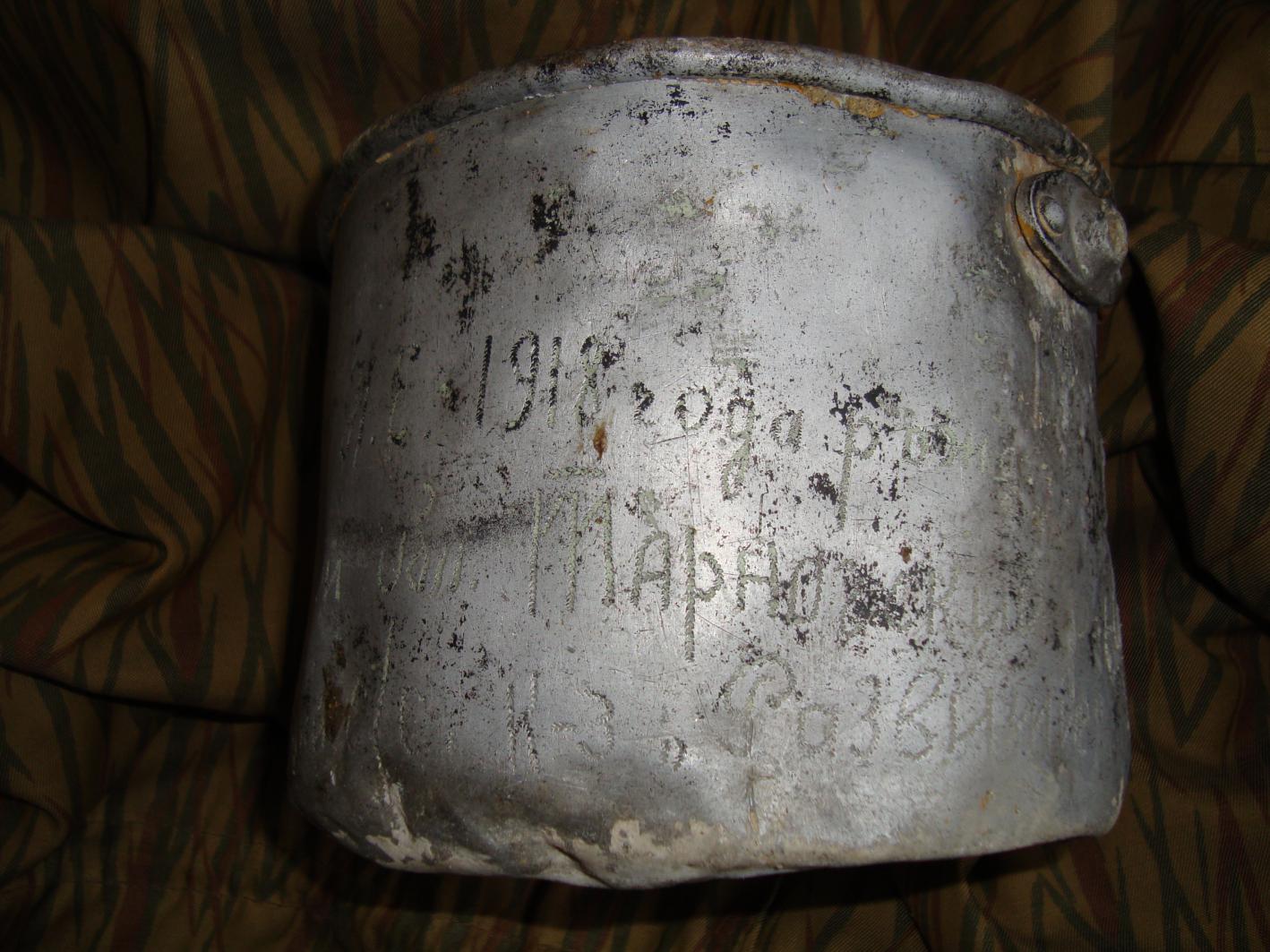 Мои котелок и фляга... на фляге - Усанин Веня на котелке: Кузьмин Н.Е. 1918 года рожд. Вологодской обл. Тарногский р-н В-Спасский с/с. К-з "Развитие" Интересно, можно ли вычислить по этим данным дальнейшую судьбу бойцов?