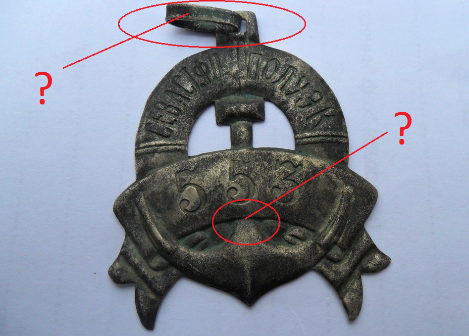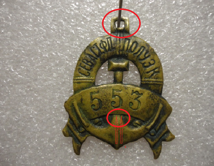 з номером 553 щось не так. вперше зустрічається у 2013 році https://sobiratel.org/post2003615.html відмічу відсутність кільця і характерні дві точки під дугою на якорі. 2015 рік https://forum.faleristika.info/viewtopic.php?p=2612248 той же номер, але потертість знака інша, з*явилося кільце і зникли точки під дугою. 2016 рік https://forum.faleristika.info/viewtopic.php?p=3657075 кільця знову немає, відновилася потертість і точки під дужкою.