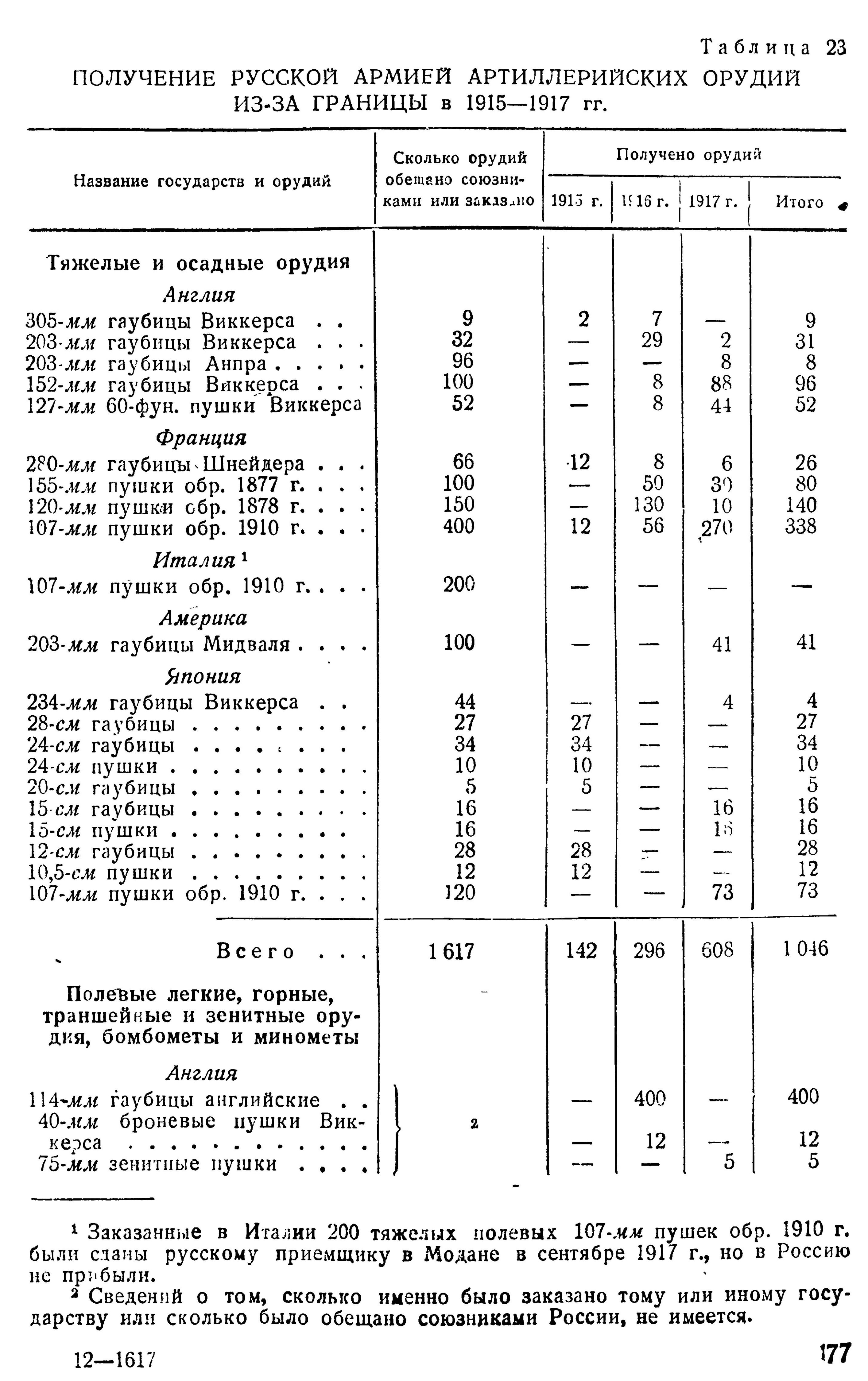 Цікаві таблиці. Тільки уважно рахуйте суми, бо є помилки. Як то гармата Мак Лена, отримали 18 і 200 одиниць, але сума вказана 18 одиниць. Зі свого досвіду роботи з архівами ще Російської імперії скажу, що цифри можуть відрізнятися і доволі суттєво, але для початку дослідження таблиці цілком підходять. Листування інколи мало доволі дурний характер, так що і порахувати усе не завжди можна.