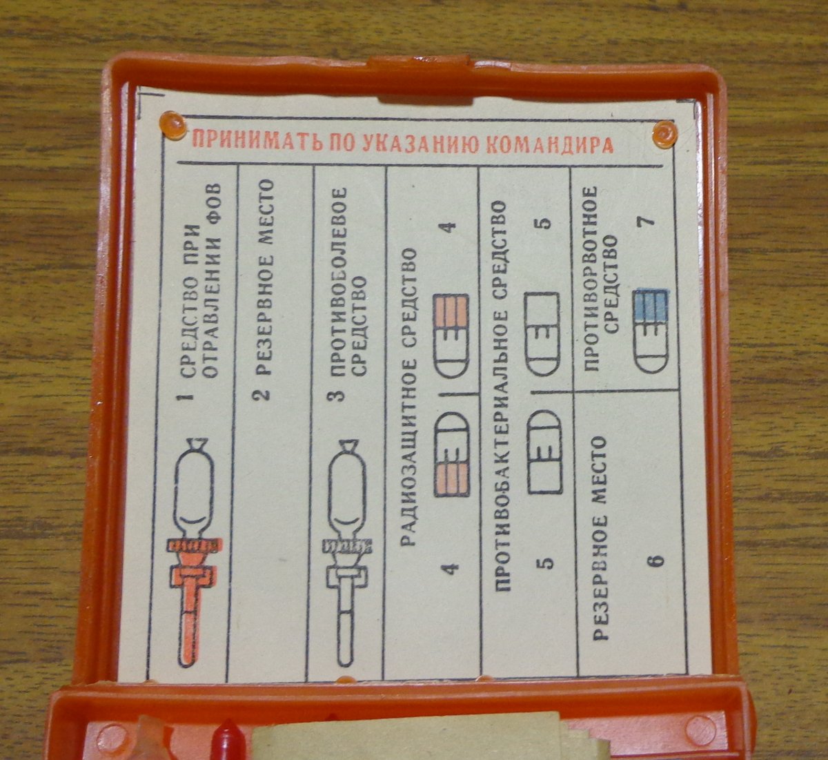 Для радіозахисту туди клали найчастіше цистамін і йодид калію. Вас мали цікавити засіб при отруєнні ФОС та знеболюючий шприц-тюбик?