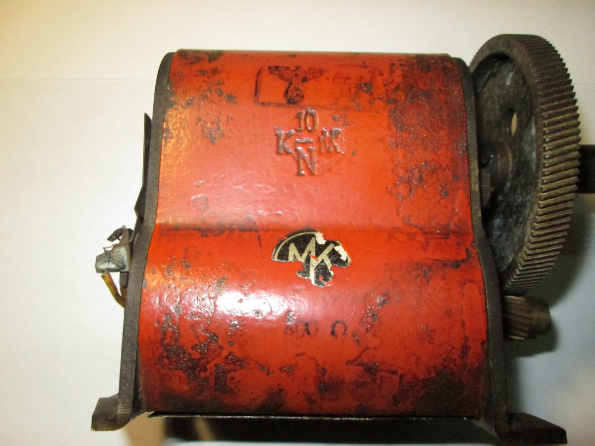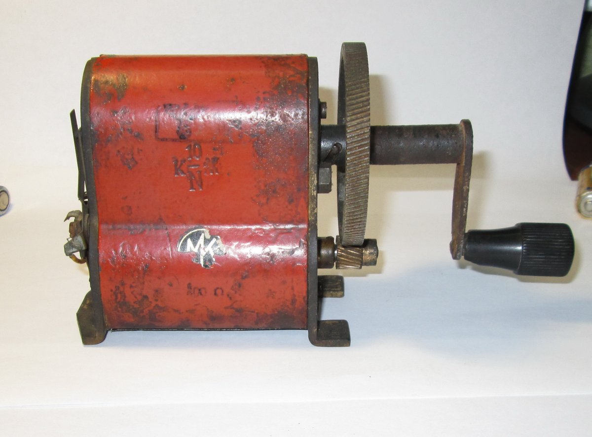 Приветствую!Просьба оценить индуктор(Kurbelinduktor) в рабочем состоянии,не коп,при нормальном вращении на выходе 75-80 вольт,при интенсивном 120-130 вольт. Недостаток:пластмассовая часть на оси рукояти не вращается и имеет скол. http://der-fernmelder.de/geraete-der-nachrichtentechnik/kurbelinduktor/