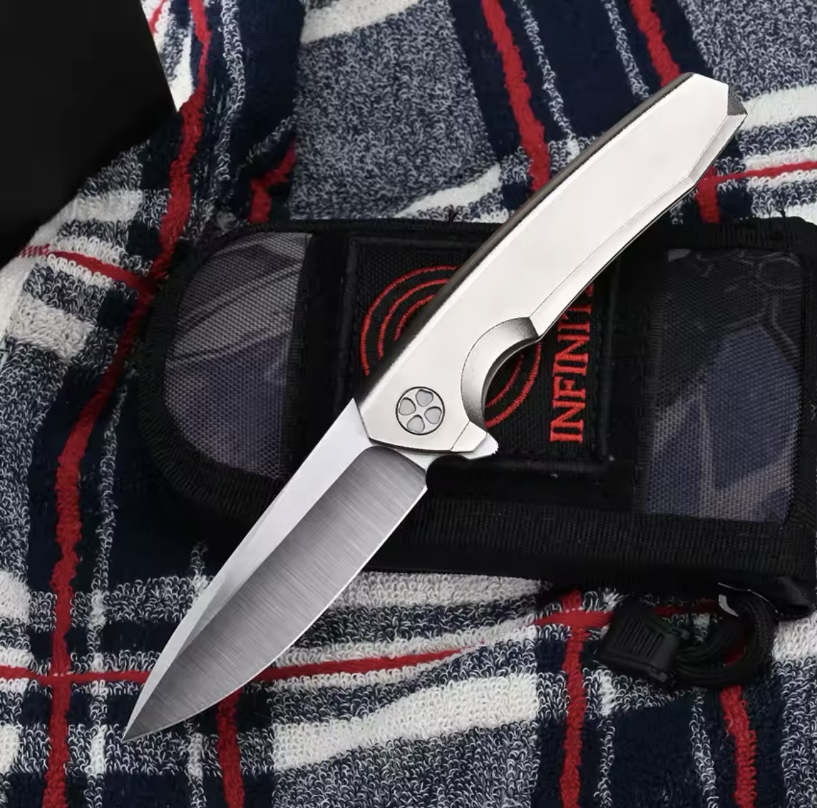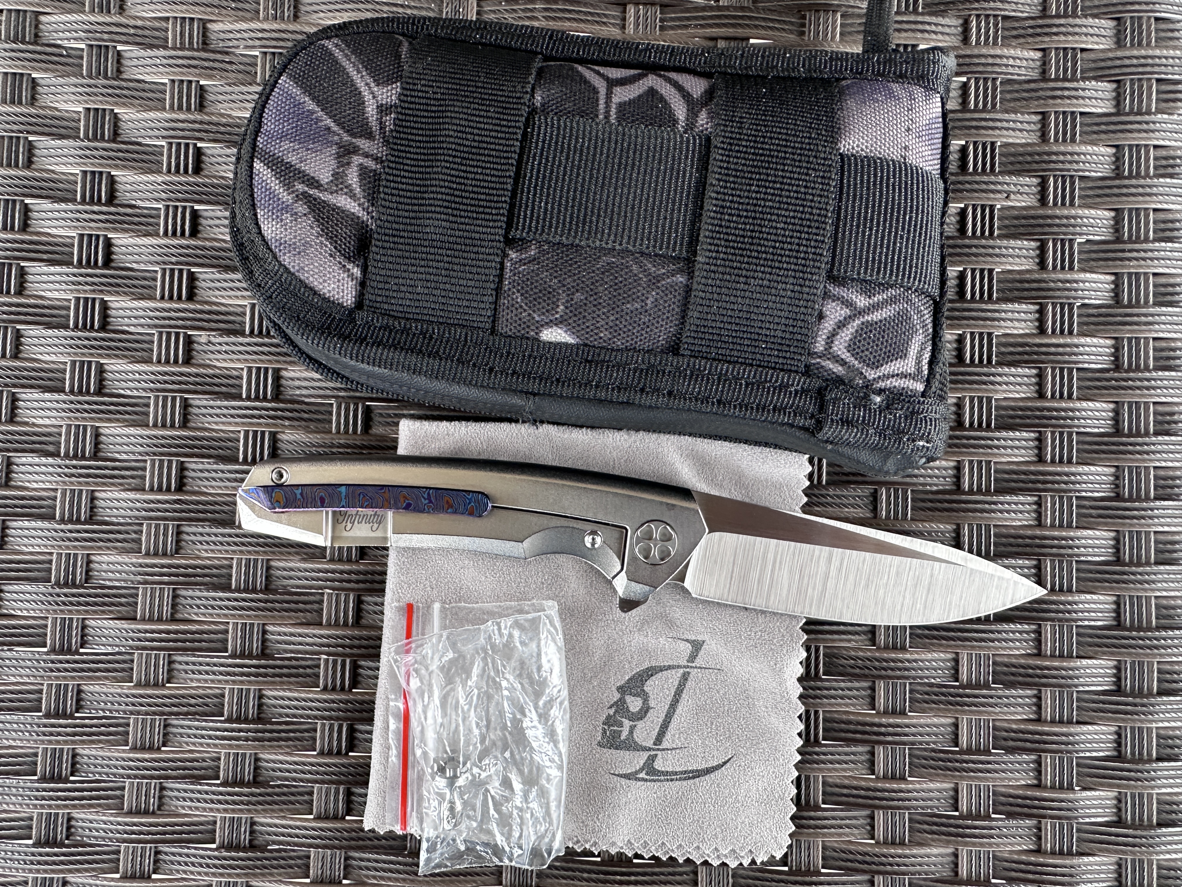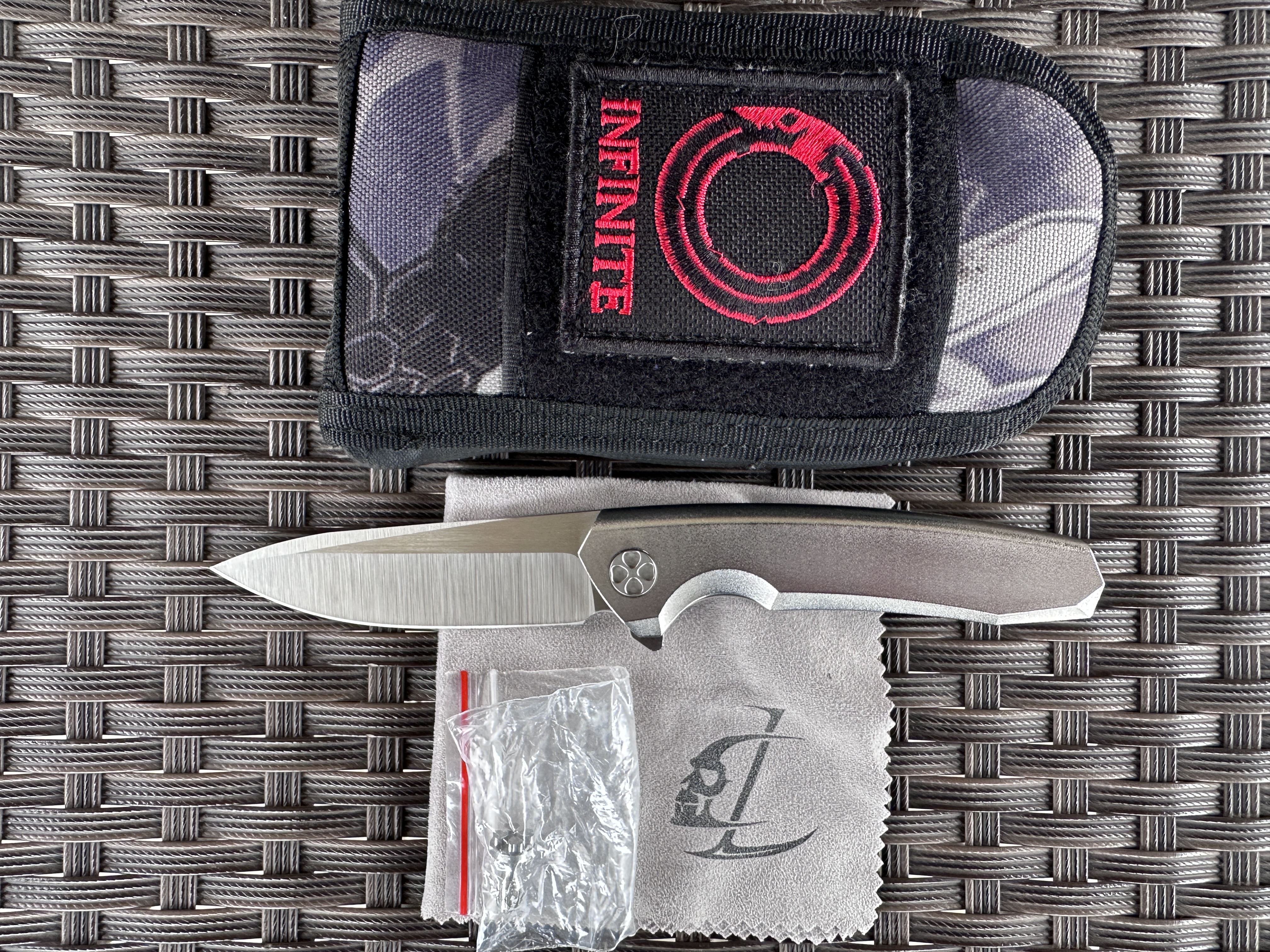 Infinite Tattoo M390 Складной нож с отличной механикой, сталь M390, с кастомной обработкой титановой рукояти (апельсиновая корка), клипса тимаскус. Кастомный осевой и подшипники которые изготовлены самим производителем. Цена: 250$ (11000 грн) Новый! Без использования. Оплата по договоренности. Пересылка НП за счет покупателя. Комплект: чехол, салфетка (использовалась), ключ для осевого, нож. ТТХ: Общая длина: 190 мм. Длина клинка: 82 мм. Длина ручки: 108 мм. Толщина лезвия: 3 Сталь клинка: BOHLER M390 Твердость: 61HRC Обработка лезвия: Сатин + вогнутые спуски Материал ручки: титан Обработка рукояти: апельсиновая корка Клипса: тимаскус. Вес нетто: 96 грамм Обзор ⏬ Обзор такого же ножа на канале TOP KNIVES! И я так понимаю что таких ножей именно с флиппером только два! В телеграмм группе от админа он же владельц первого ножа было написано следующее: Фенг виклав у продаж INFINITE Tattoo таку ж як мені зробили на замовлення (без ) 1 штука в наявності. Подробиць не знаю, може через нього свій ніж продає хз. Але штука ексклюзивна. Я думав вона тільки у мене))