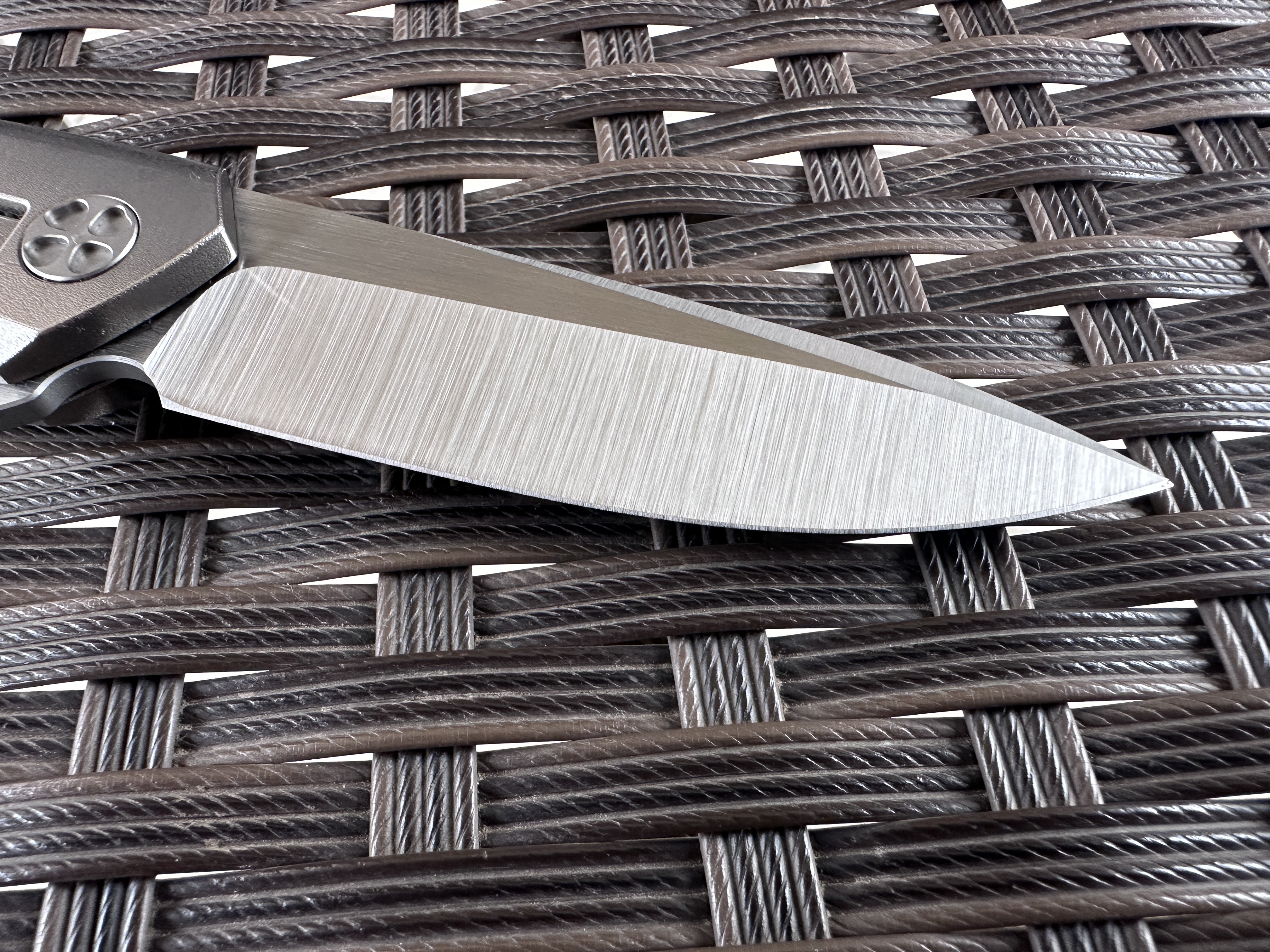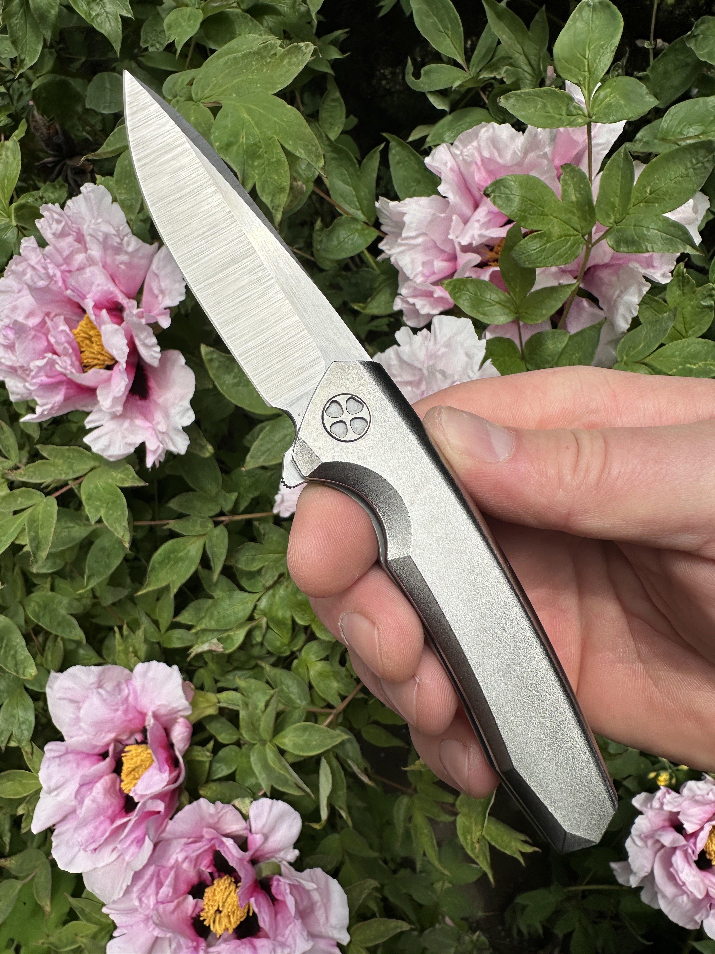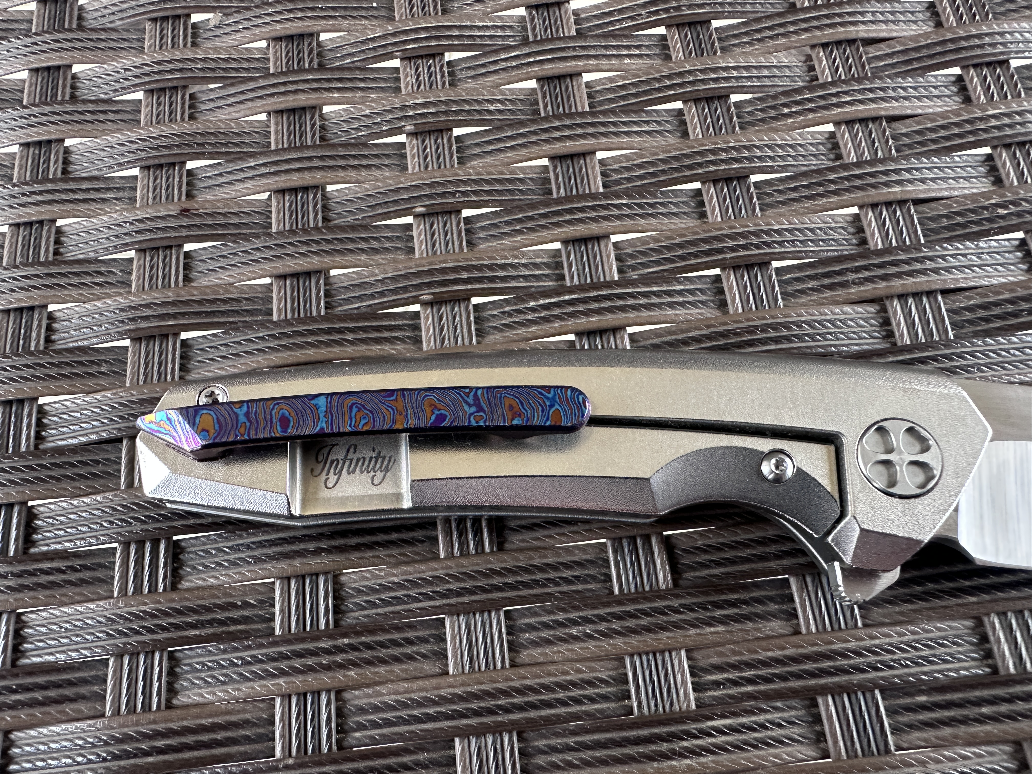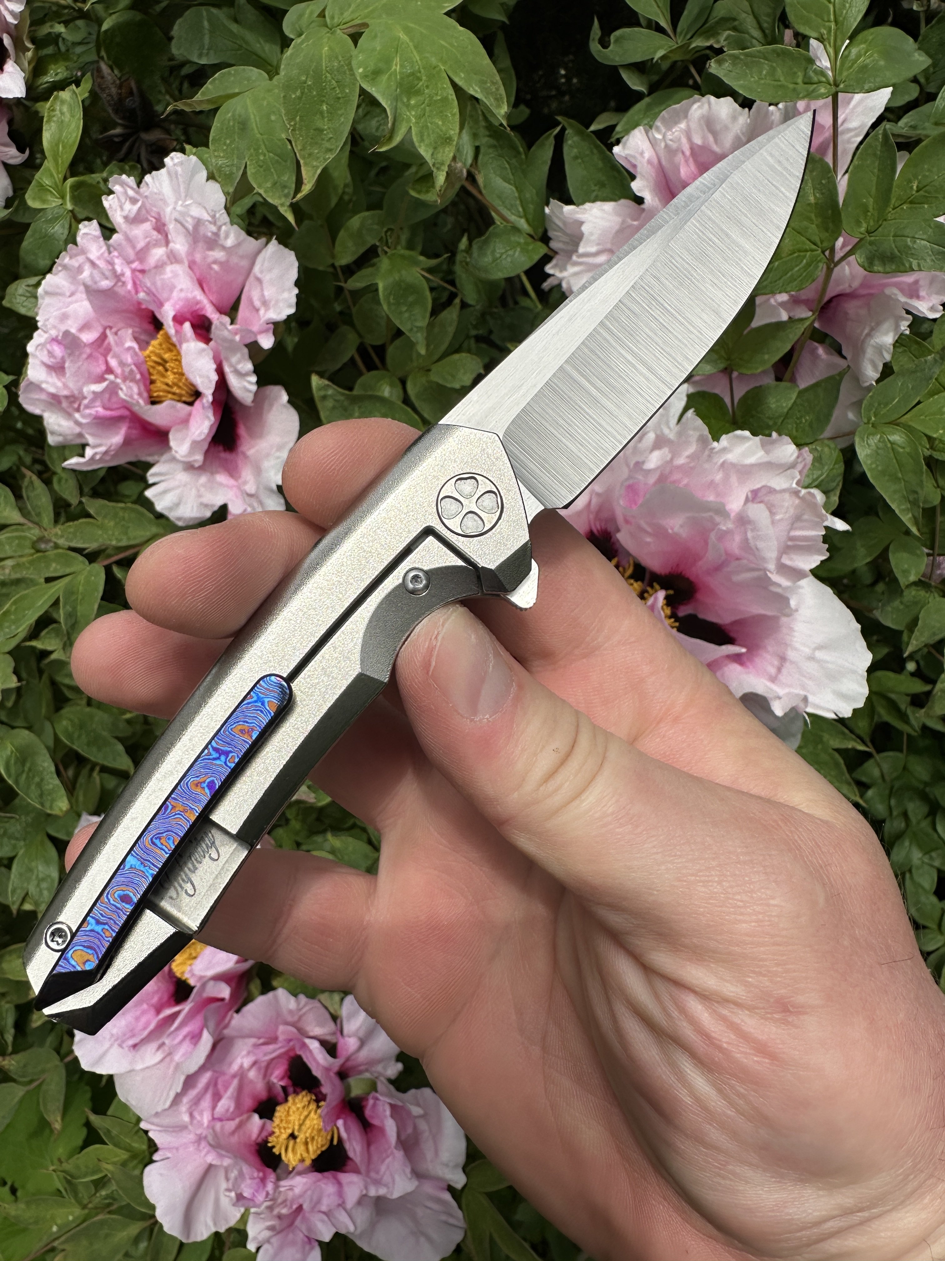 Infinite Tattoo M390 Складной нож с отличной механикой, сталь M390, с кастомной обработкой титановой рукояти (апельсиновая корка), клипса тимаскус. Кастомный осевой и подшипники которые изготовлены самим производителем. Цена: 250$ (11000 грн) Новый! Без использования. Оплата по договоренности. Пересылка НП за счет покупателя. Комплект: чехол, салфетка (использовалась), ключ для осевого, нож. ТТХ: Общая длина: 190 мм. Длина клинка: 82 мм. Длина ручки: 108 мм. Толщина лезвия: 3 Сталь клинка: BOHLER M390 Твердость: 61HRC Обработка лезвия: Сатин + вогнутые спуски Материал ручки: титан Обработка рукояти: апельсиновая корка Клипса: тимаскус. Вес нетто: 96 грамм Обзор ⏬ Обзор такого же ножа на канале TOP KNIVES! И я так понимаю что таких ножей именно с флиппером только два! В телеграмм группе от админа он же владельц первого ножа было написано следующее: Фенг виклав у продаж INFINITE Tattoo таку ж як мені зробили на замовлення (без ) 1 штука в наявності. Подробиць не знаю, може через нього свій ніж продає хз. Але штука ексклюзивна. Я думав вона тільки у мене))