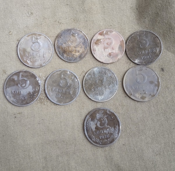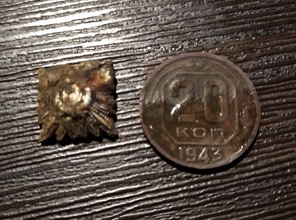 У одного кокарда РККА, 3 шт. різних пфенінги, 1 цариця полів, 1 пятак з масонським орлом але убитий в хлам. У іншого 6 советів, обломок сметрніка. Їхні знахідки не фоткав.