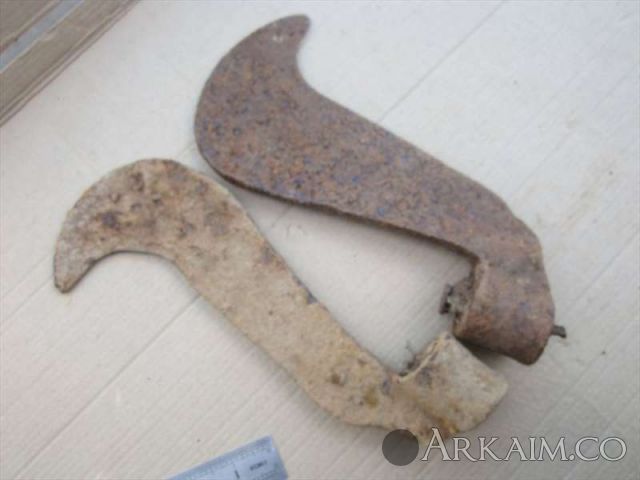 Доброго. Скобель (струг) - сомнительно. У хазар эти инструменты были весьма традиционных форм. Для примера на рис. №№10-12 - ведь и сейчас практически такими же пользуемся: Сучкорезы в традиционном исполнении - то же не слишком подходят: ну вот, например: Однако если предположить, что это цалда - инструмент (топорик) для расчистки земли и срезания кустов и мелких веток, то как бы становиться понятнее - вот например современный Кавказ: Однако, должен заметить, что никогда не слышал о подобном у хазар. Если отойти от хазарской сопутки, то можно предположить, что сие что-то вроде той же цалды, изготовленной в веке 19-м в под свою руку и свои задачи.